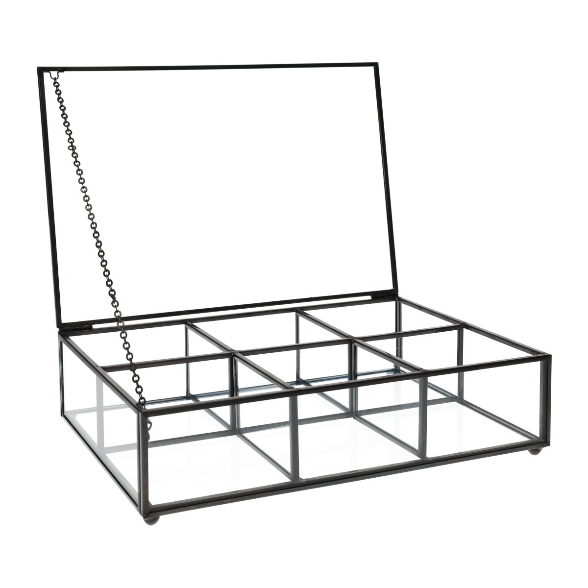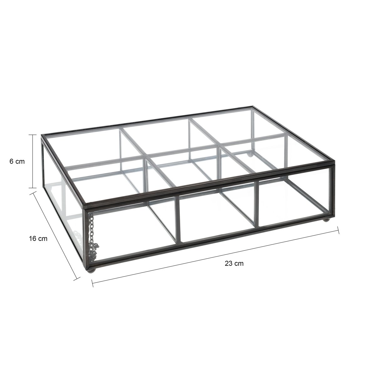 QUVIO Theedoos – Glas – Metaal – Zwart