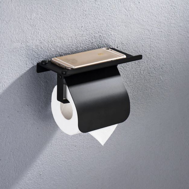 - De toiletrolhouder met telefoonplank is geheel zwart, waardoor het bijdraagt aan een strakke look in iedere toiletruimte of badkamer