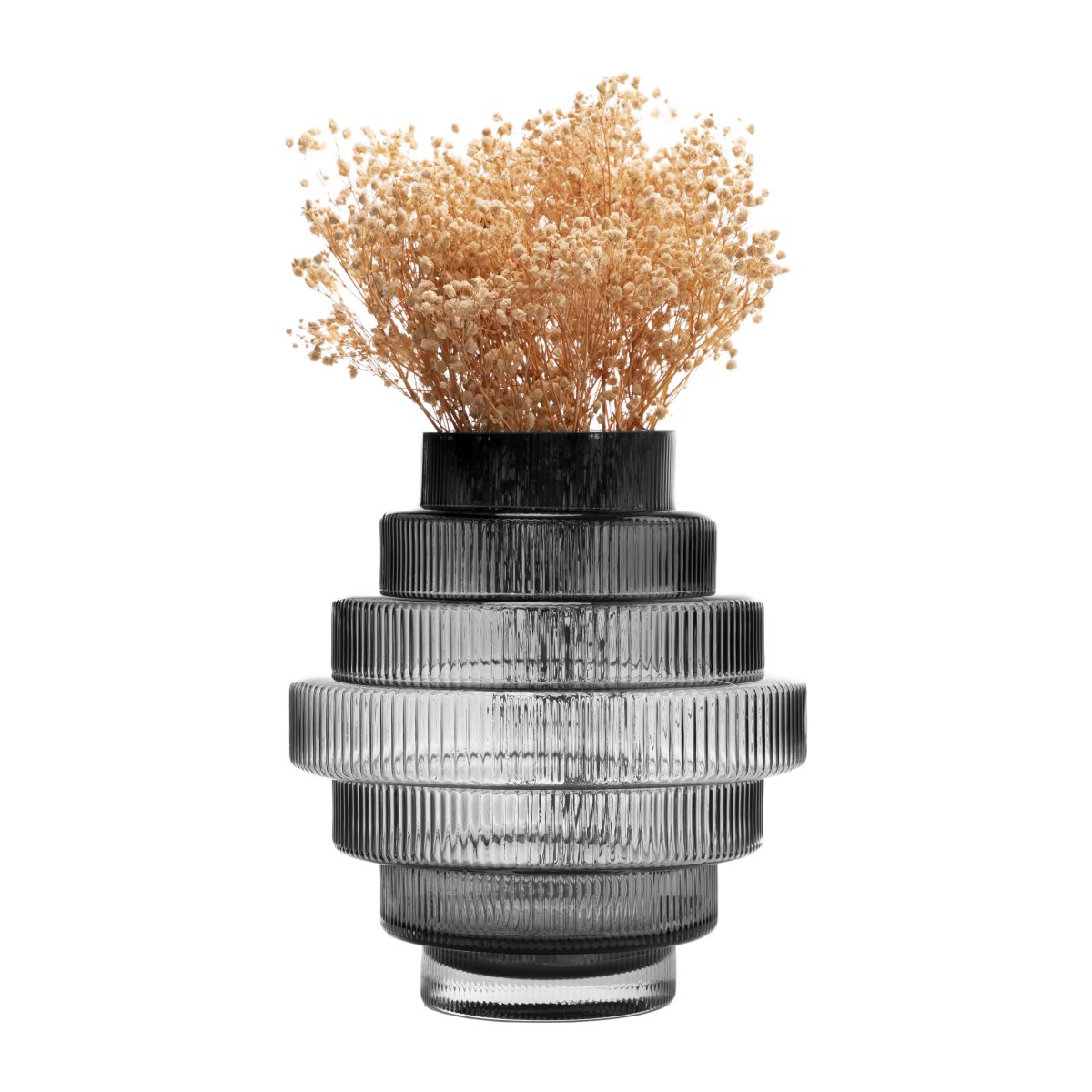 Een opvallende transparant zwarte vaas voor jouw (droog)bloemen