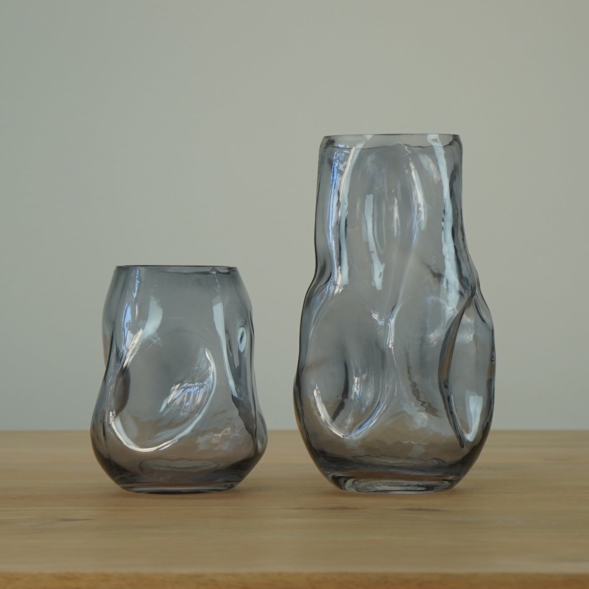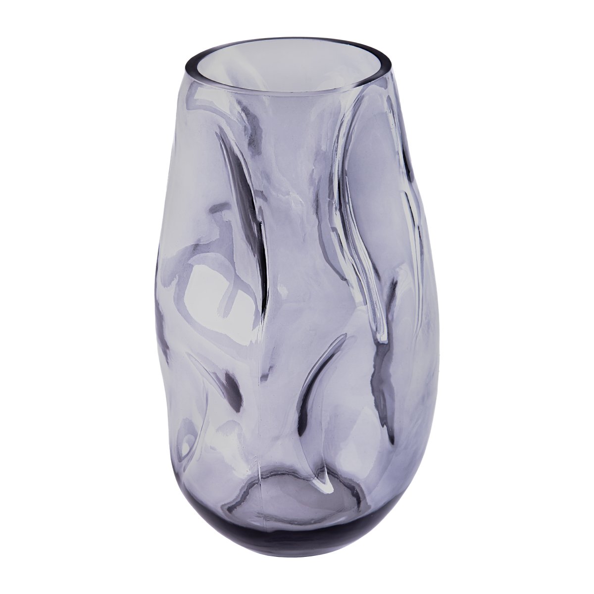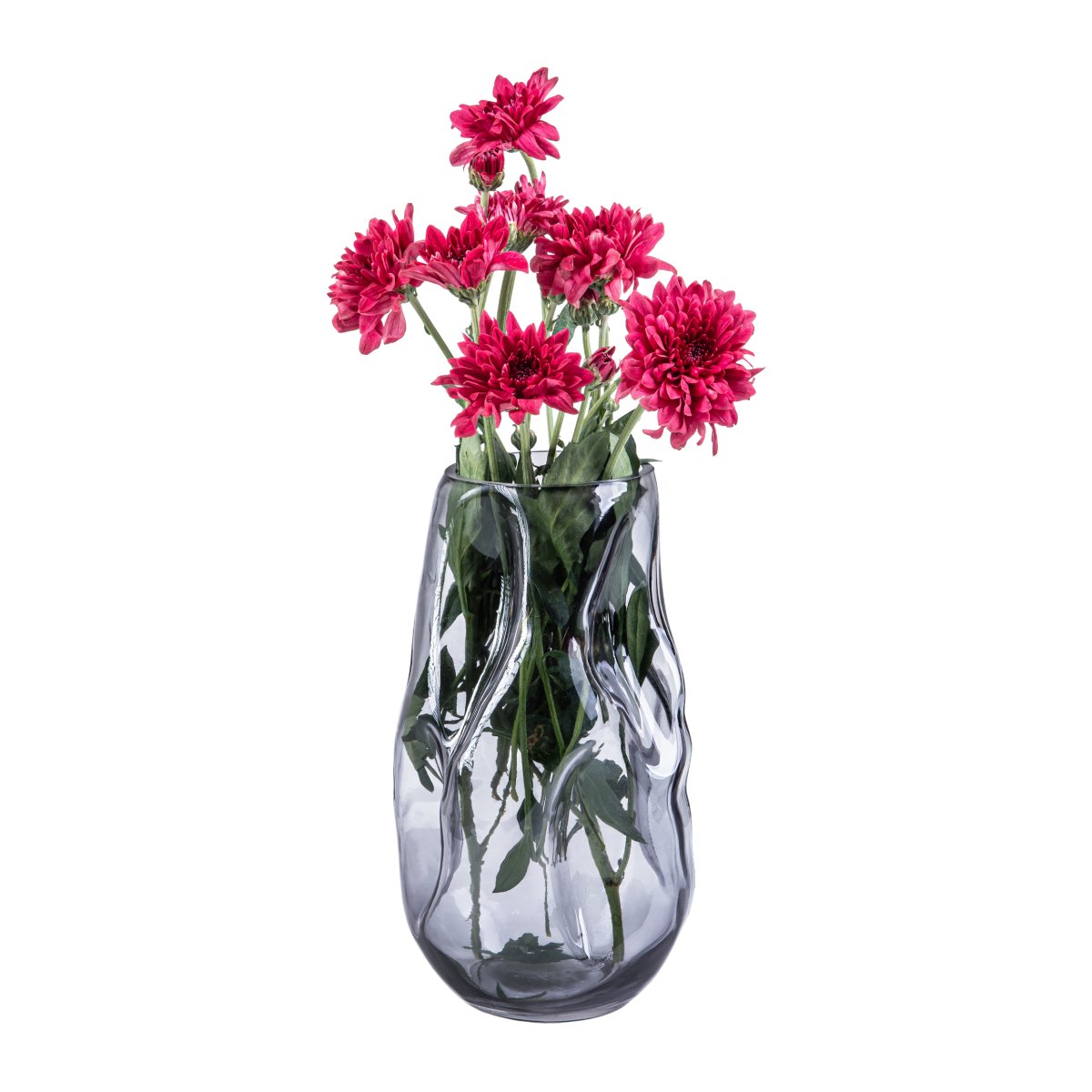 De vaas grijs onderscheidt zich door zijn unieke ingedeukte ontwerp, wat zorgt voor een moderne en artistieke uitstraling. Het smoke grijze glas voegt een vleugje mysterie en elegantie toe, waardoor deze vaas een echte eyecatcher is in je woonkamer, slaapkamer of kantoor.