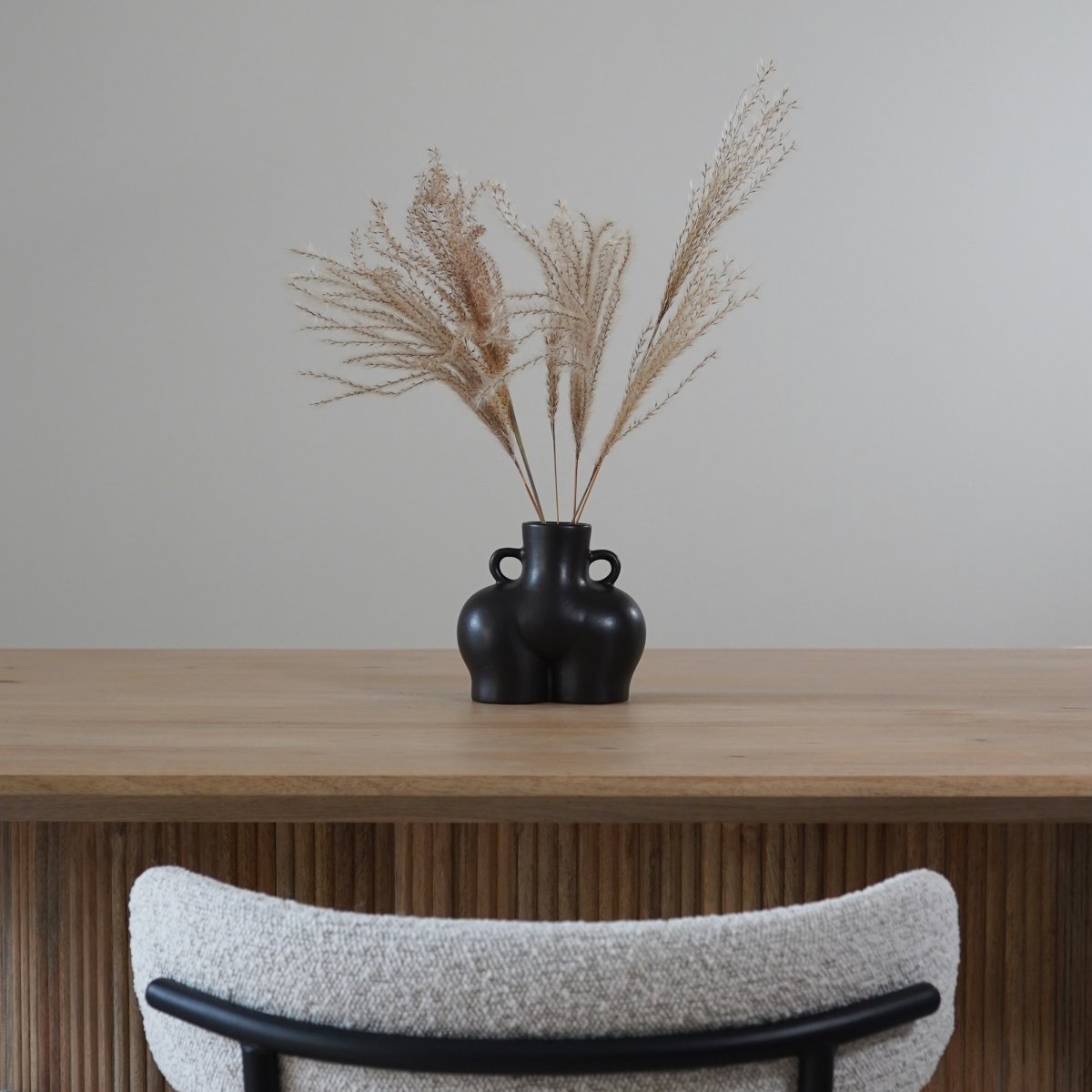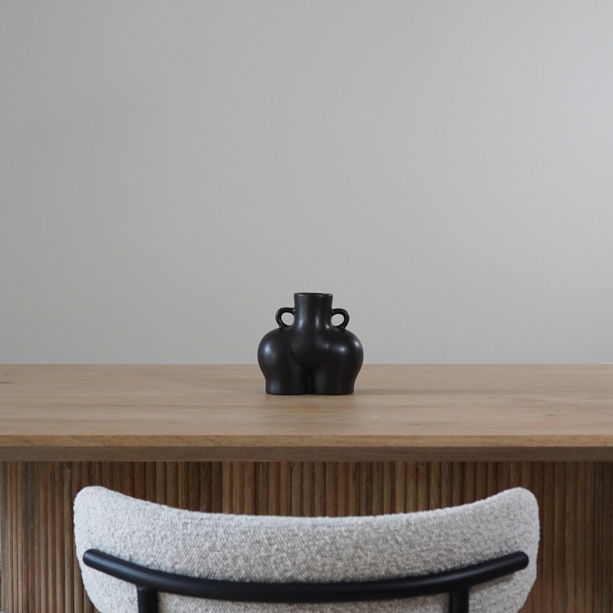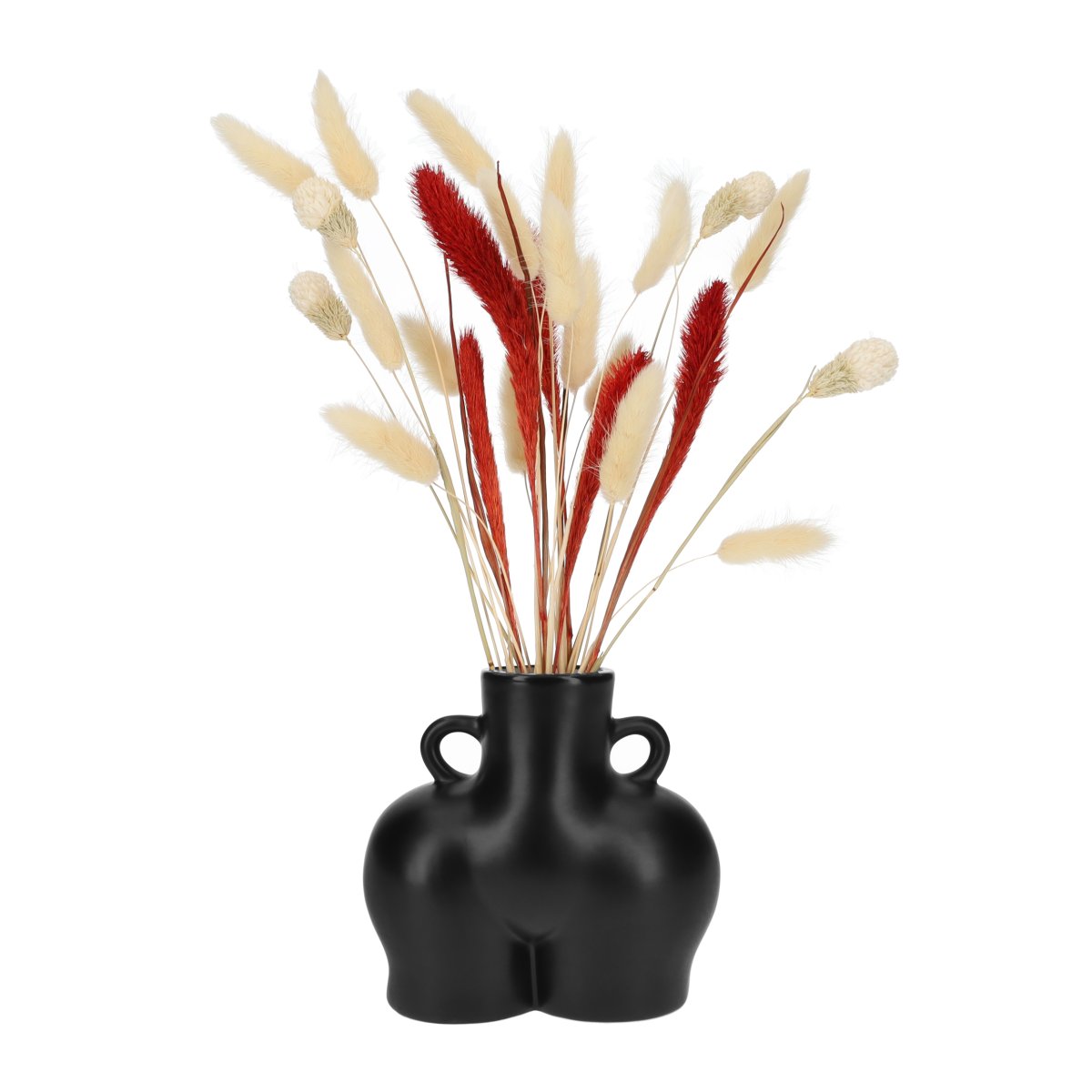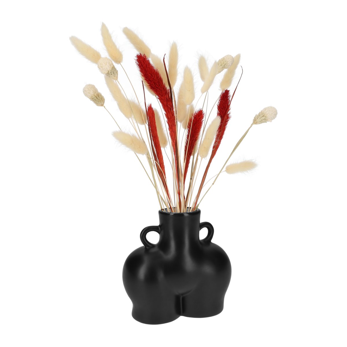 Bloemenvaasjes komen in alle soorten en maten. Dat bewijst deze vaas in de vorm met lichaam in het zwart van QUVIO ook zeker. Deze bijzondere vaas heeft namelijk de vorm van een lichaam. Daarbij heeft het vaasje ook nog aan beide zijden een klein handvat. Het resultaat is een prachtige vaas met een klassieke vorm en uitstraling. Het is een geweldige vaas voor echte bloemen en droogbloemen. Door de zwarte kleur is de vaas bovendien eenvoudig te combineren met andere woonaccessoires en woonstijlen. Heb jij al een perfect plekje voor dit vaasje in gedachten?