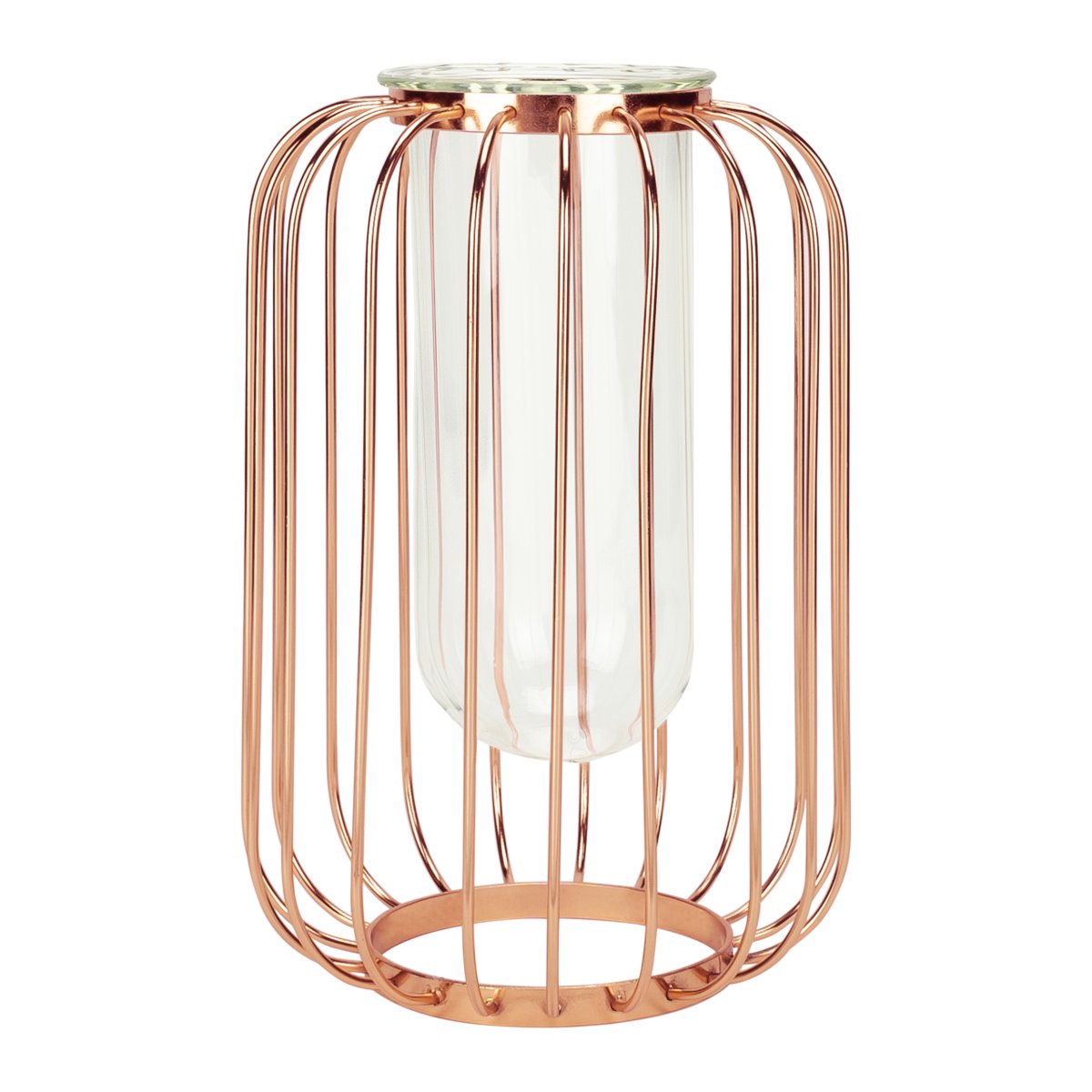 Op zoek naar een mooie en elegante vaas met spijlen van metaal voor je woonkamer, slaapkamer of badkamer? Dan is deze vaas met spijlen van QUVIO een goede keuze. Dit elegante exemplaar zorgt ervoor dat je echte of neppe bloemen er in stijl bij staan. De vaas is gemaakt van glas en draadstaal. De roségouden spijlen geven de vaas zijn bijzondere uitstraling en maken het tot een blikvanger in diverse interieurstijlen.