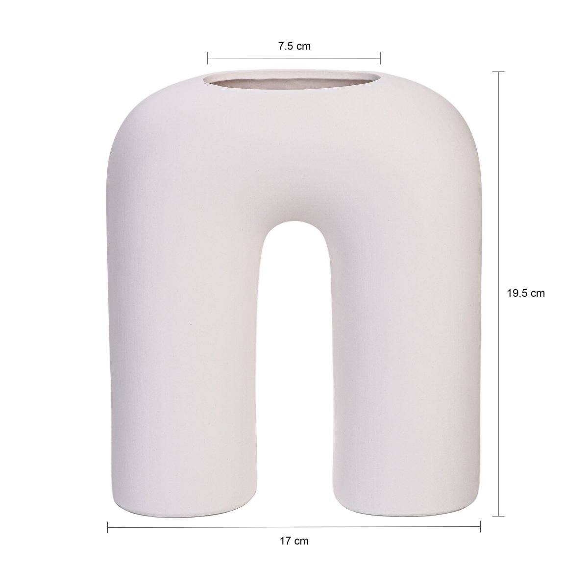 De witte kleur geeft de vaas misschien een natuurlijk uiterlijk, de omgekeerde U-vorm maakt van de vaas direct een blikvanger. De bijzondere vorm ziet er modern en strak uit. Tegelijkertijd zorgen de afgeronde vormen voor een warm en huiselijk gevoel. Zet meerdere van deze vazen verspreid over jouw interieur neer en geniet van de eenheid en rust die ze uit zullen stralen.