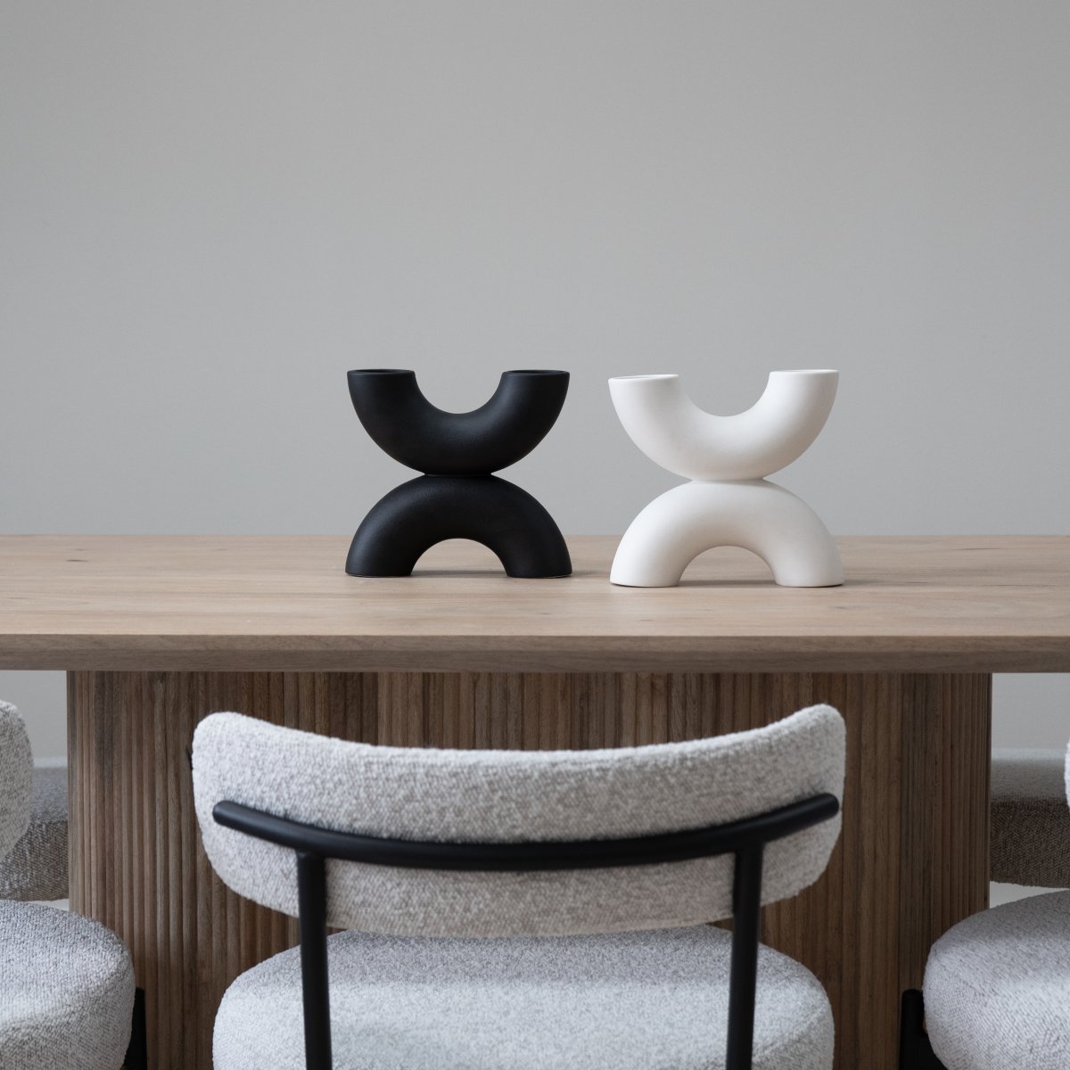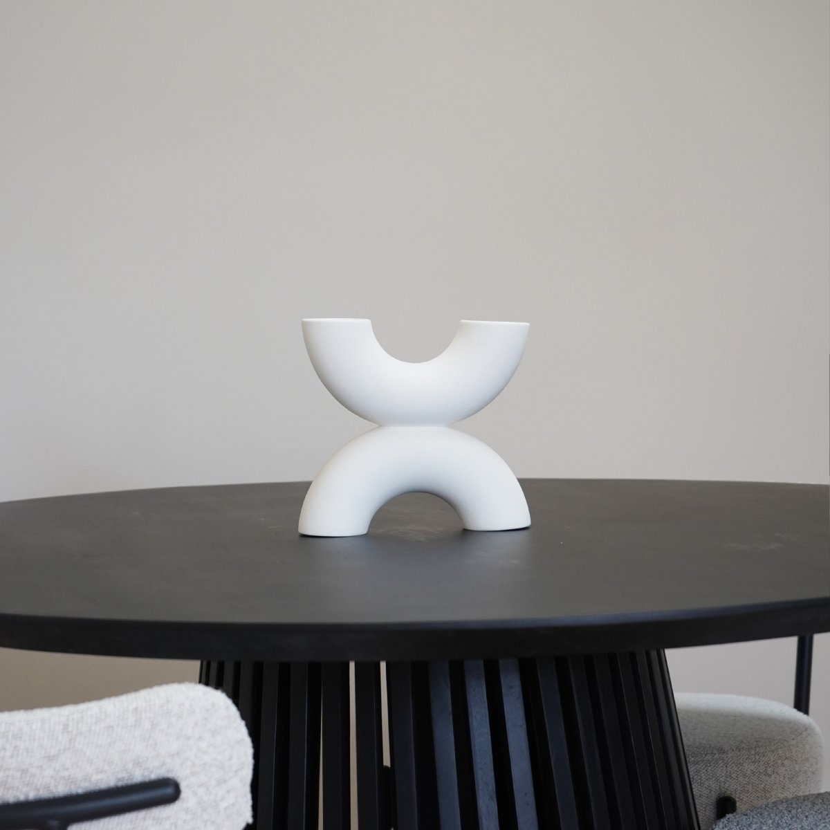 De QUVIO vaas valt op door zijn unieke vorm, samen met de witte kleur, zorgt voor een natuurlijke en rustige uitstraling, zelfs met zijn opvallende vormgeving. Als woonaccessoire is deze vaas moeiteloos te combineren met andere elementen in je interieur. Stijl hem samen met kandelaren of vul de vaas met bloemen om je decor een persoonlijke touch te geven.