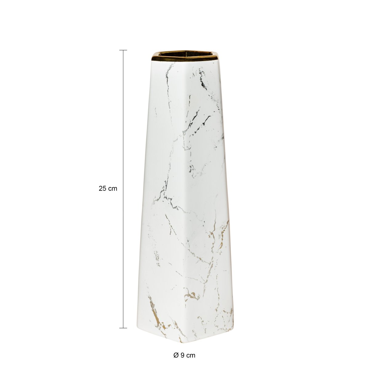 Houd jij ook zo van de elegante hotel chique stijl? Dan mogen deze vazen van keramiek in het wit niet in je woning ontbreken. De bloemenvazen hebben een marmerlook in wit met goud en zien er daardoor erg stijlvol uit. In de set zitten drie verschillende maten vaasjes. Combineer de vazen mooi bij elkaar of zet de vaasjes juist op verschillende plaatsen in huis. Zo geniet je waar in huis je maar wilt van deze schitterende vazen van keramiek in het wit.