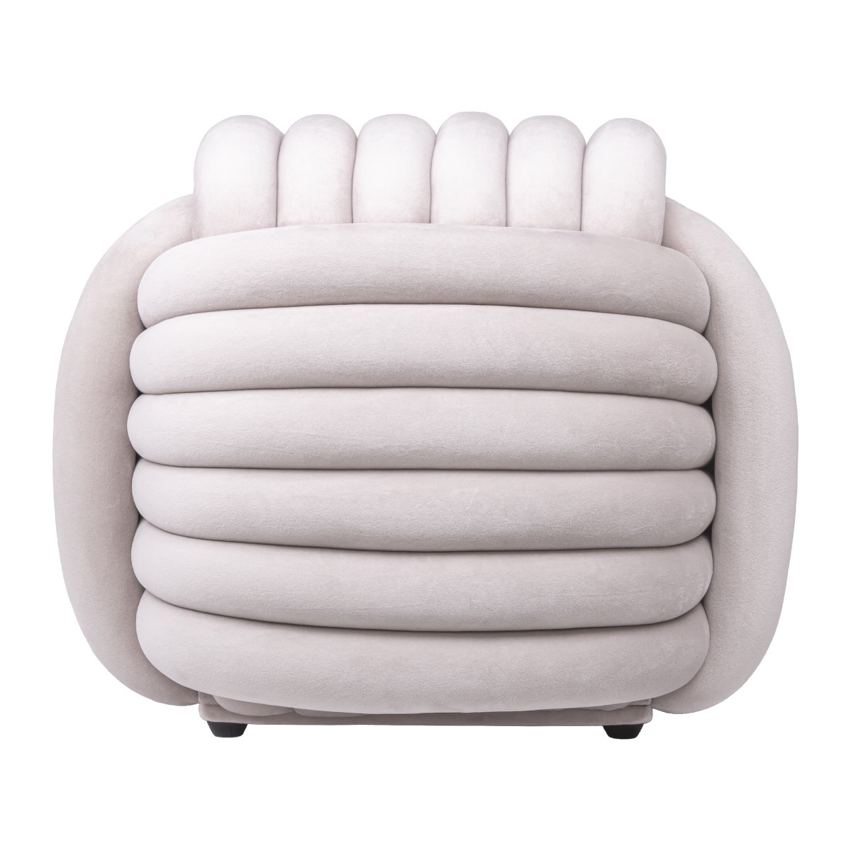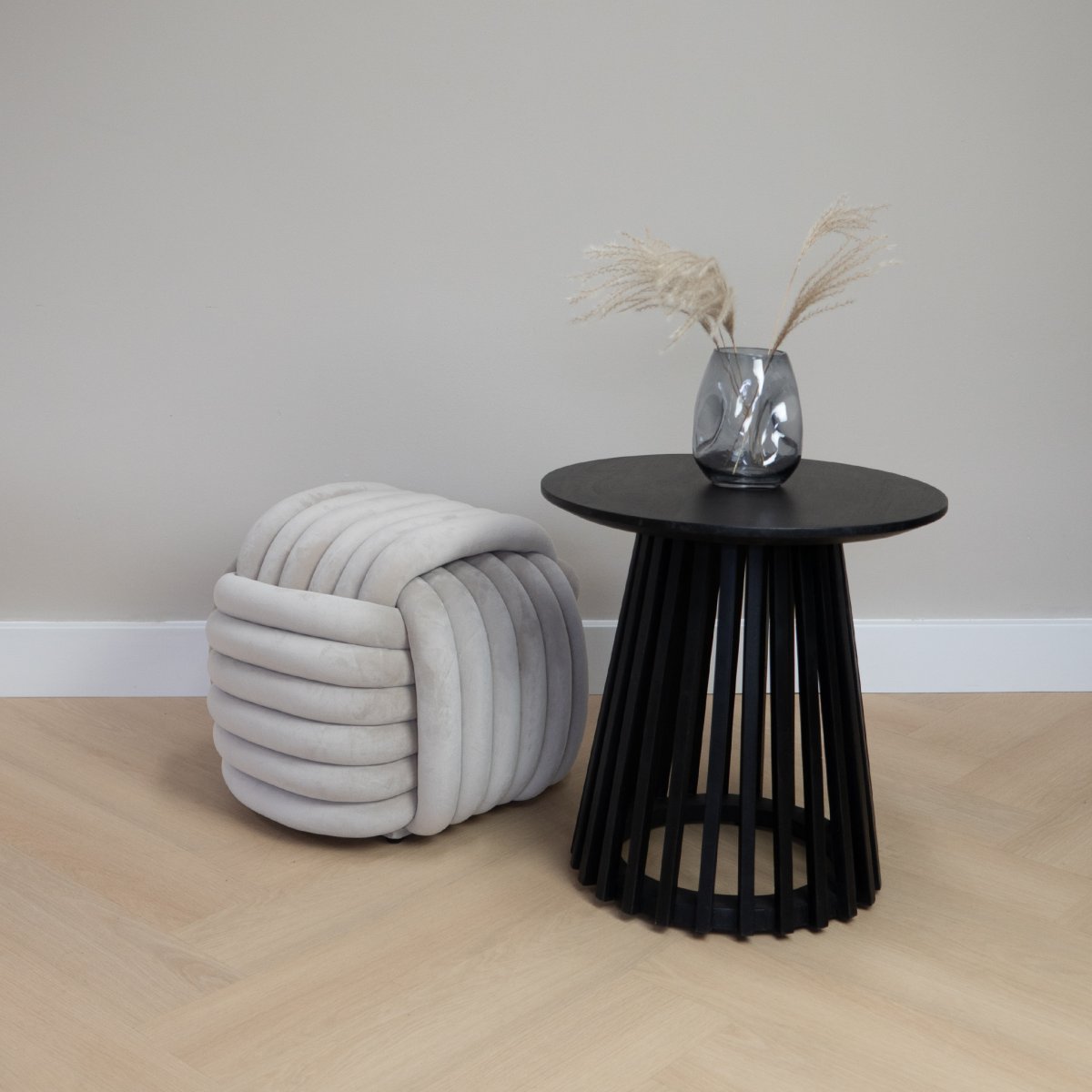 Deze beige poef onderscheidt zich door zijn unieke knoopontwerp, wat zorgt voor een speelse maar stijlvolle uitstraling. Het zachte polyester materiaal voelt heerlijk comfortabel aan, waardoor je graag op dit poefje zult neerploffen. Deze poef is niet alleen functioneel, maar ook een opvallend decoratiestuk in je interieur.