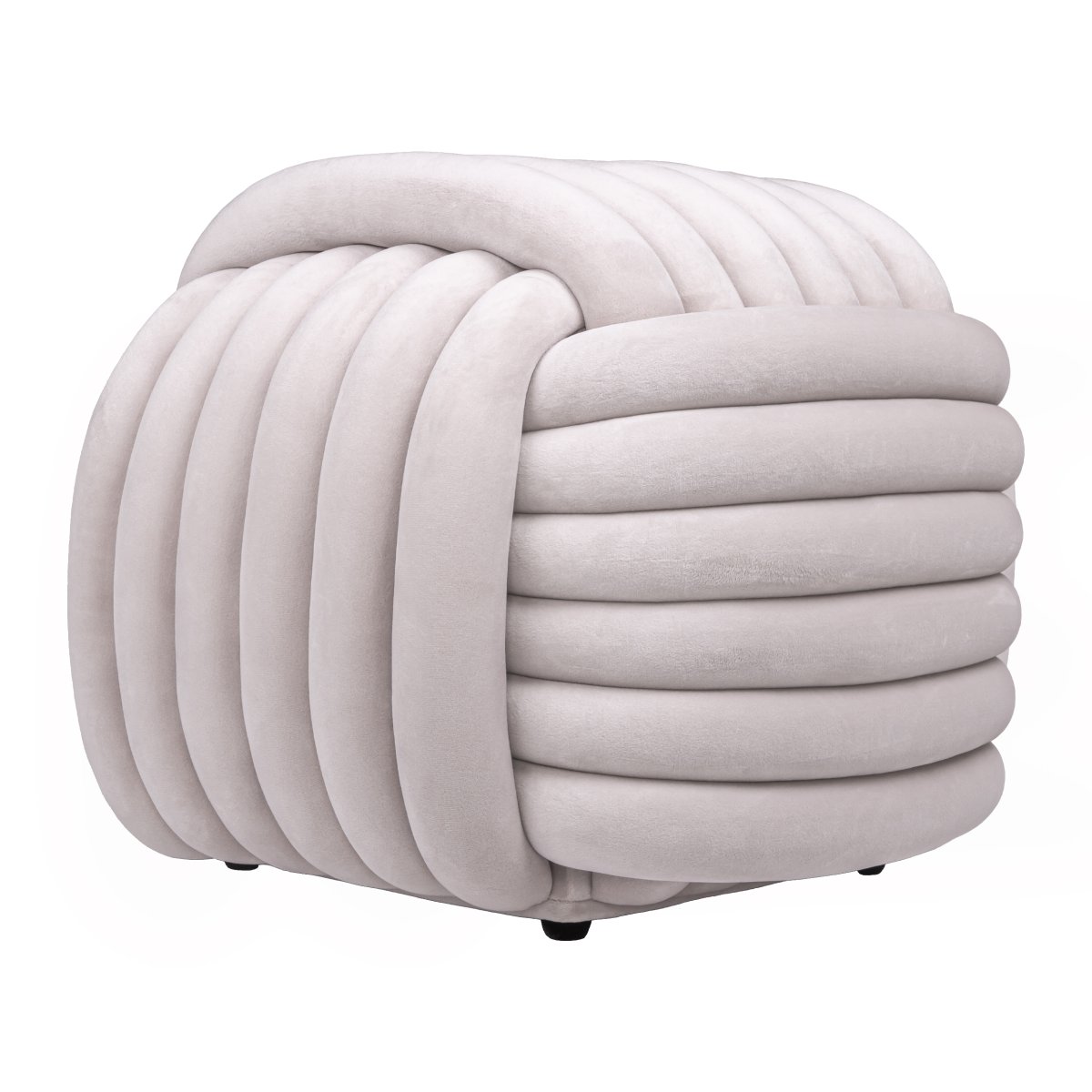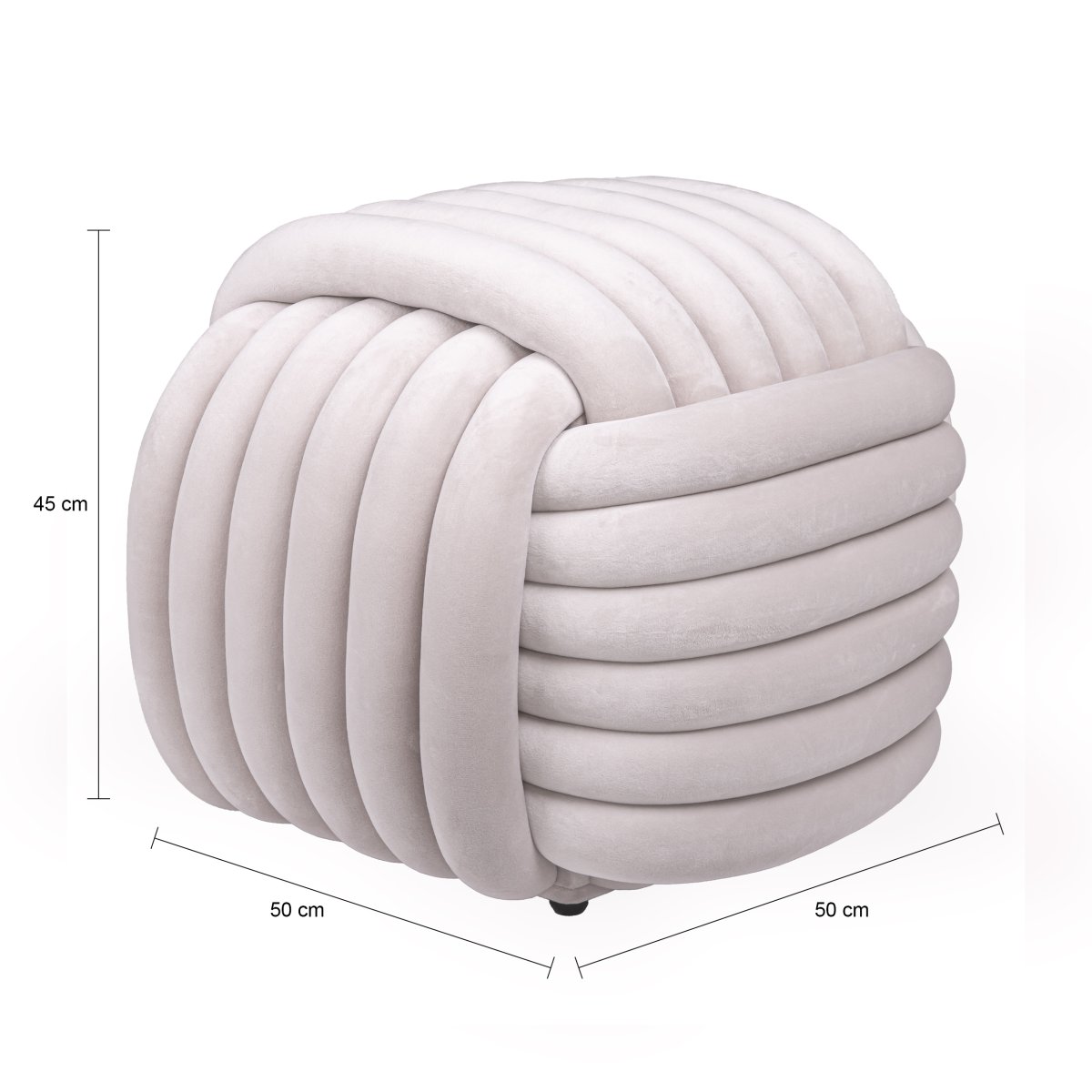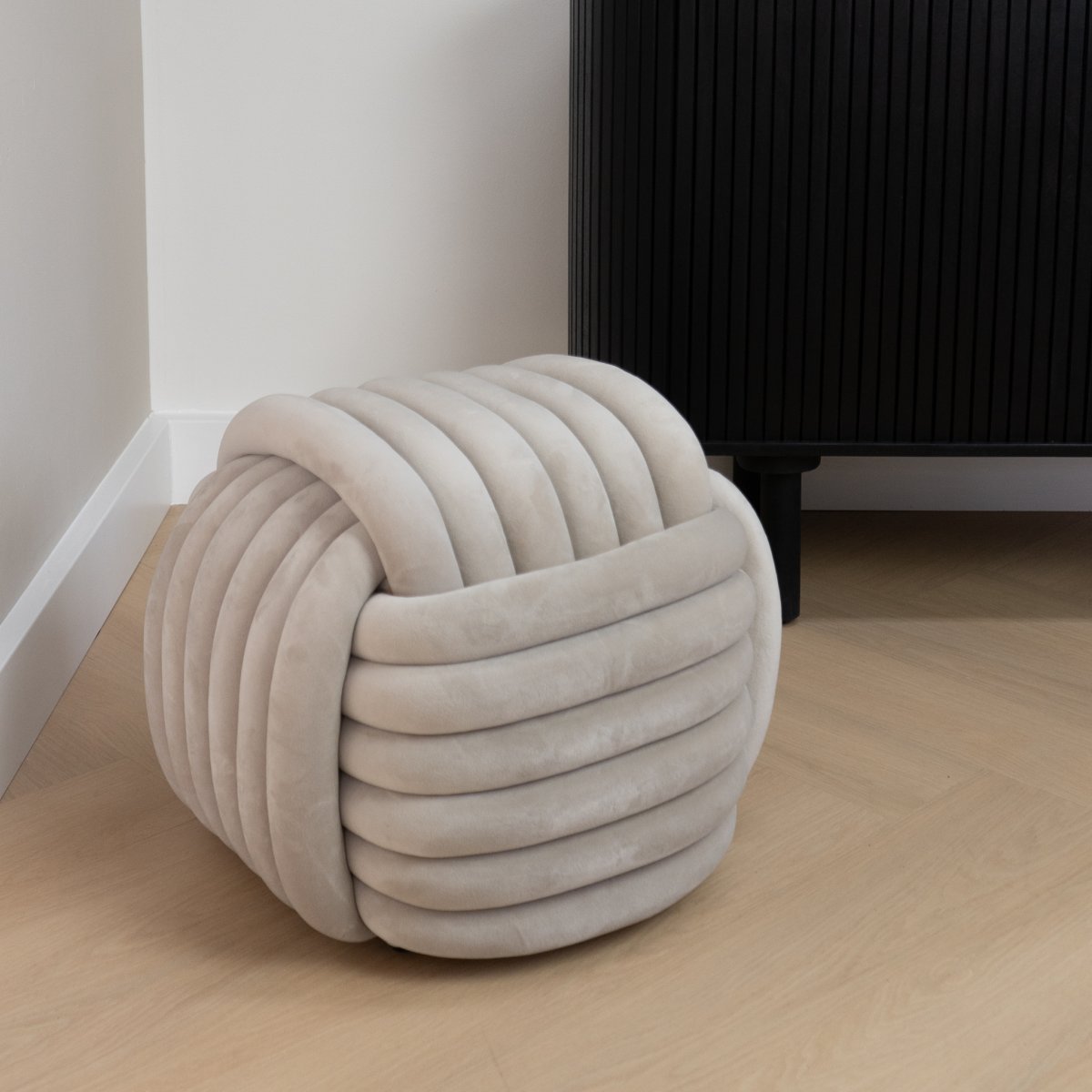 Geniet van comfort en stijl met deze zachte, geknoopte beige poef