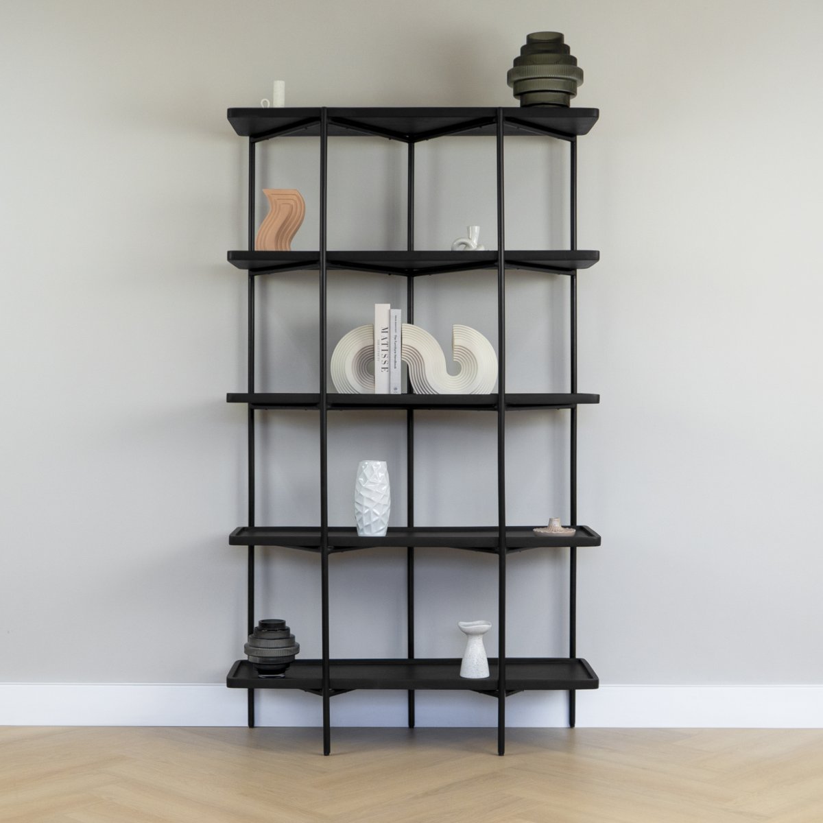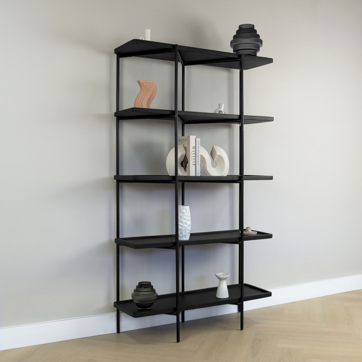 Met zijn royale afmetingen van 180 cm hoog biedt deze wandkast voldoende ruimte voor al je opbergbehoeften. De vijf ruime planken maken het mogelijk om je items overzichtelijk en stijlvol te ordenen. Of je nu boeken, planten of andere decoratieve items wilt uitstallen, de houten wandkast biedt de perfecte oplossing.