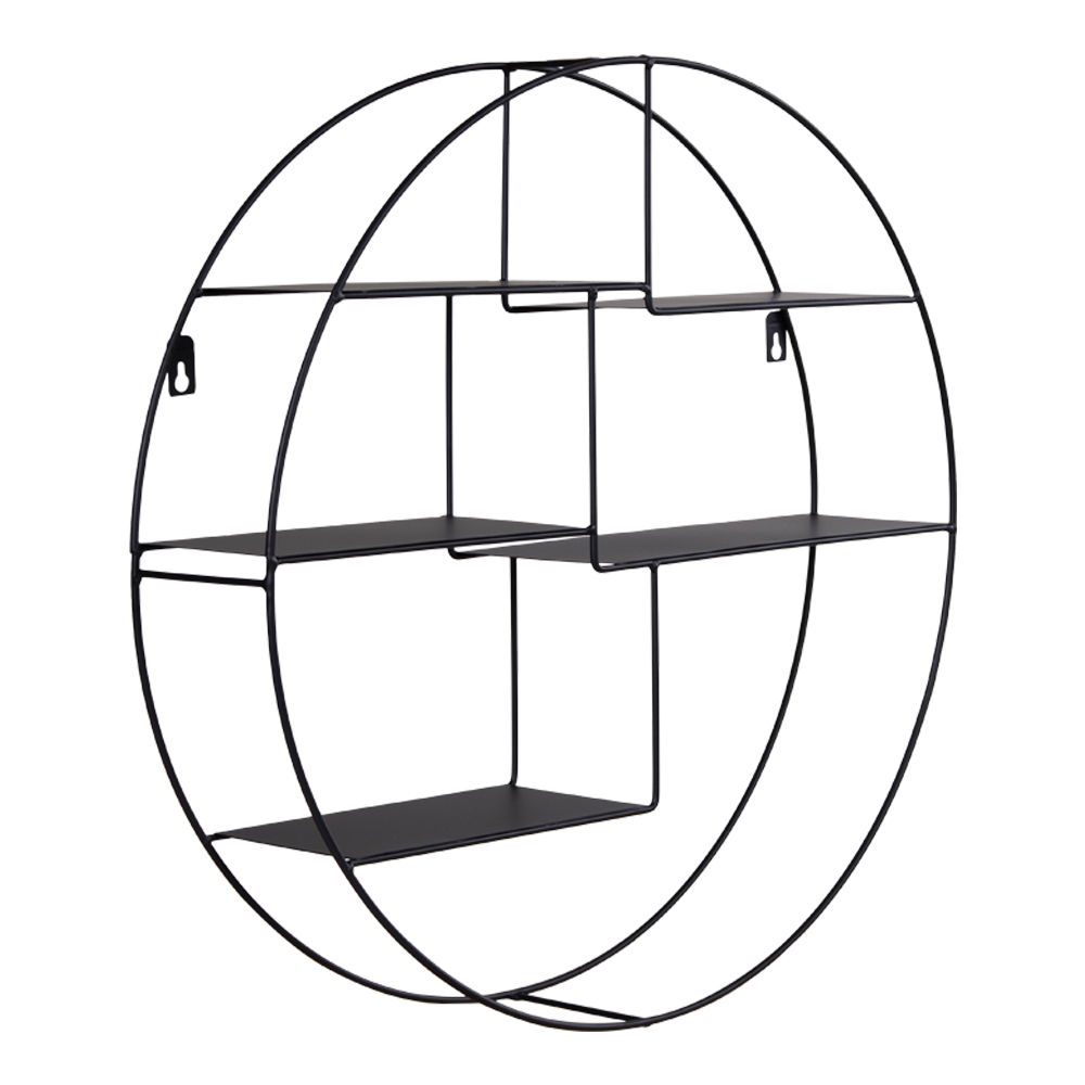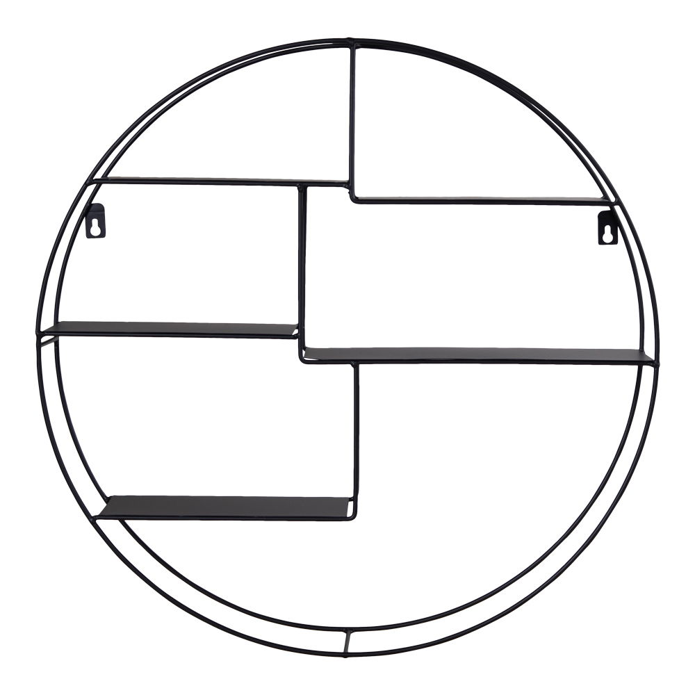 Deze wandrek biedt niet alleen een esthetische meerwaarde, maar is ook zeer functioneel. Met een diameter van 47 cm en een hoogte van 10 cm is er voldoende ruimte om boeken, planten, fotolijsten of andere decoratieve items op te plaatsen. De zwarte kleur en het strakke ontwerp maken het dus eenvoudig om de plank te integreren in verschillende interieurstijlen.
