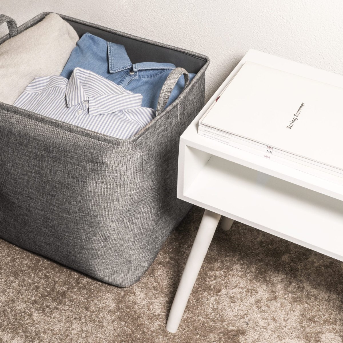 Een opgeruimd huis en hoofd met deze wasmand in het grijs