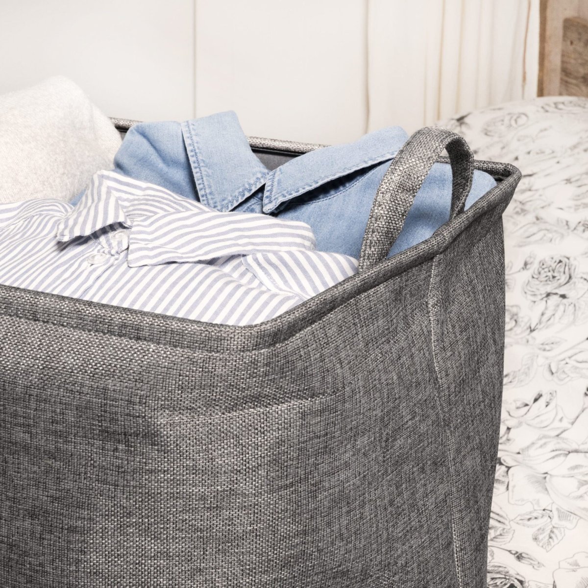 Deze wasmand met handvaten in het grijs is gemaakt van vochtbestendig en toch ademend materiaal. Dit zorgt ervoor dat je zelfs de natte handdoeken uit de badkamer met een gerust hart in de waszak kan gooien. Dat maakt deze wasbox ideaal voor elke ruimte in het huis. Op de slaapkamer of kinderkamer voor alle vieze kleding, in de badkamer voor de gebruikte handdoeken of in de keuken voor de thee- en handdoeken. Het stijlvolle design past bovendien in elk interieur. De opbergmand ziet er luxe uit en zal niet teveel opvallen. Een wasmand is immers niet bedoeld als eyecatcher binnen jouw woning. Zo maakt deze wasmand met handvaten jouw huis onopvallend een stukje beter opgeruimd. En een opgeruimd huis zorgt voor een opgeruimd hoofd. Dat geeft rust.