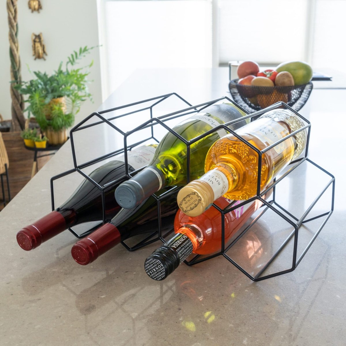 Dit wijnrek heeft plaats voor 7 flessen wijn. Je kunt dus meerdere flessen rode of witte wijn kwijt in dit moderne rekje. Met een vol rek heb je altijd keuze tussen verschillende wijnen wanneer je visite ontvangt.