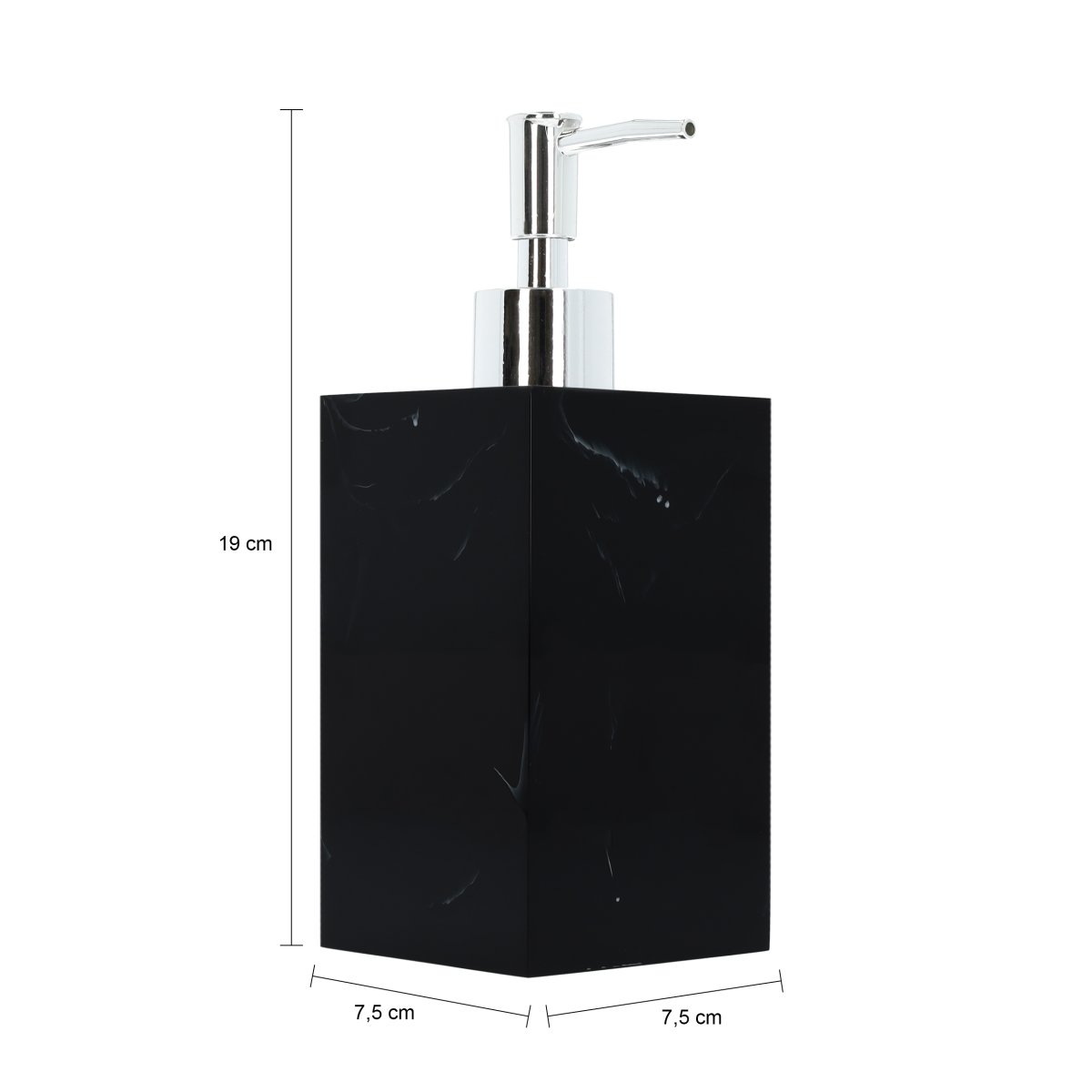 Deze zeepdispenser in het zwart met marmerlook heeft een luxe uitstraling, maar is wel gemaakt van kunststof. Dat biedt veel voordelen. Zo is de zeepdispenser niet zo zwaar, is het materiaal eenvoudig schoon te houden en het zeeppompje valt niet snel kapot. Met een inhoud van 500 milliliter kun je vaak je handen wassen, voordat je de dispenser opnieuw moet vullen. Het pompje vullen gaat bovendien eenvoudig en snel. Hierdoor is deze zwarte zeepdispenser keer op keer te gebruiken. Waar zet jij deze chique zeepdispenser neer?