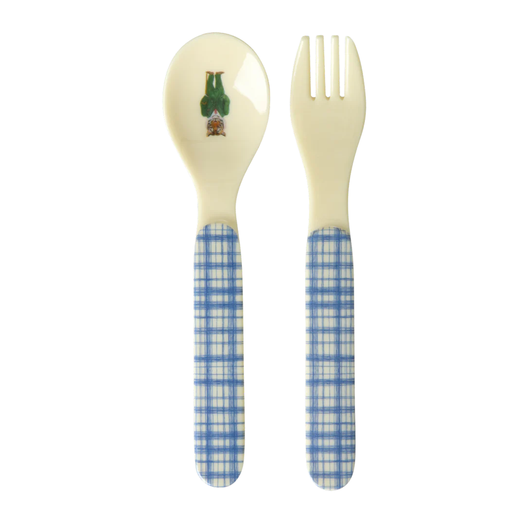 Rice: Baby lepel en vork – Nathalie L’ete Print Blauw BABSF-NATB
