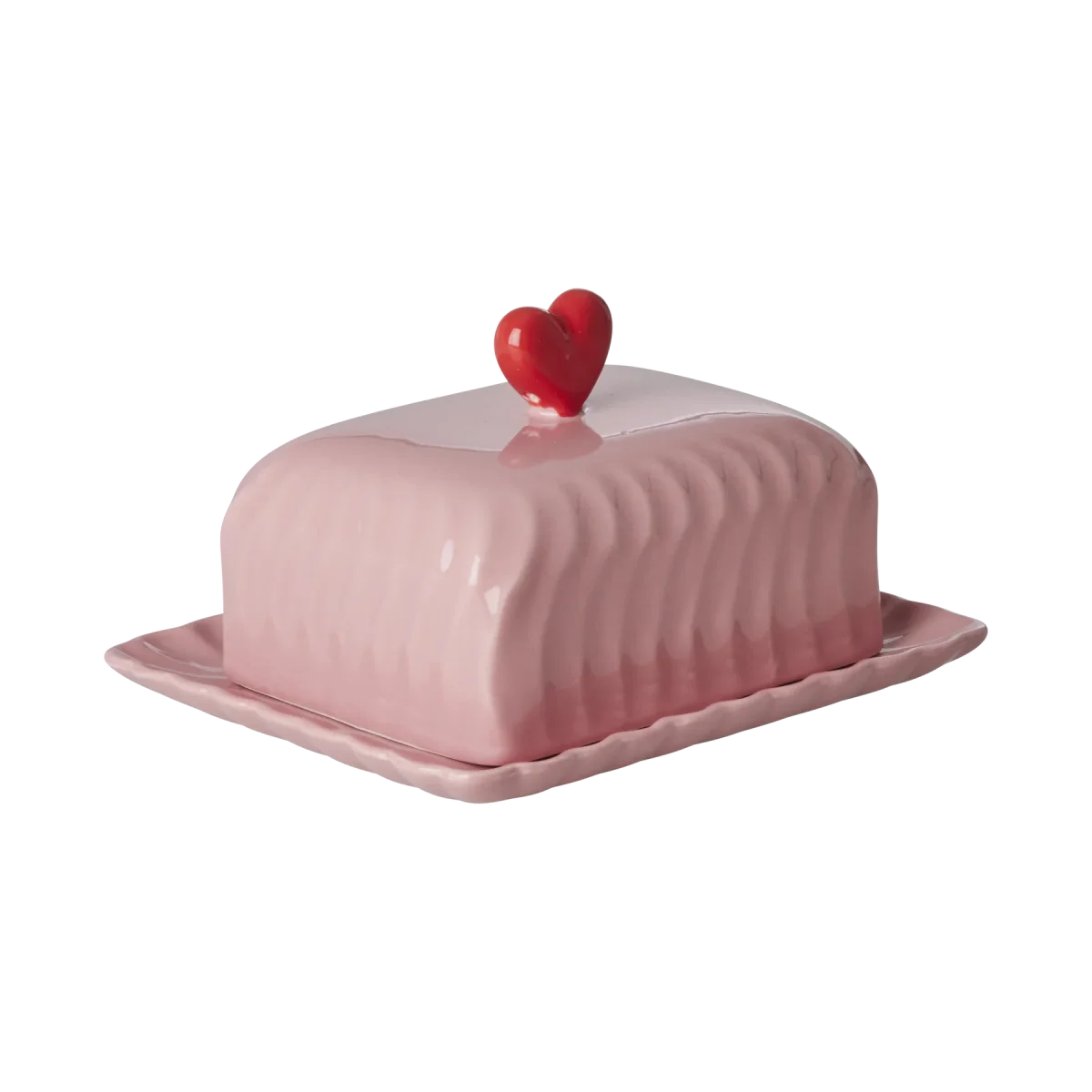 Laat zelfs je boter opvallen aan je ontbijttafel met dit schattige keramieken botervlootje. Het botervlootje is roze kleurig met een golvend ontwerp en op het deksel staat een schattig hartje – leuk, origineel en functioneel, allemaal tegelijk!