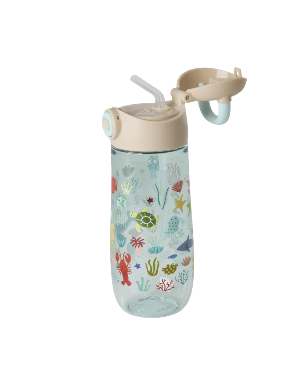 Heb je wel eens dorst onderweg? Met deze leuke kinder drinkfles met de “Ocean” print kan je gemakkelijk onderweg iets te drinken meenemen … De fles is makkelijk te gebruiken voor kleine vingertjes en de gehele fles is vaatwasmachine bestendig. De fles kan 550 ml bevatten.