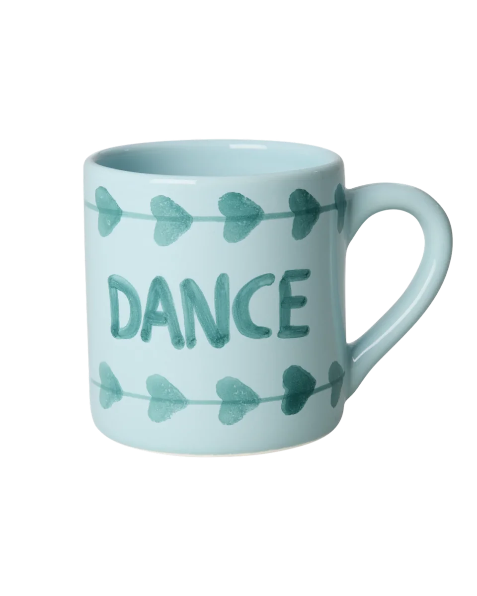 De allerleukste koffiekop van keramiek met handgeschilderde hartjes en het woord “dance” (dans) geschreven in het midden. Deze koffiekop is met de hand beschilderd door een groep geweldige Portugese vrouwen, waardoor elke kop uniek is. Wij vinden dat erg leuk!