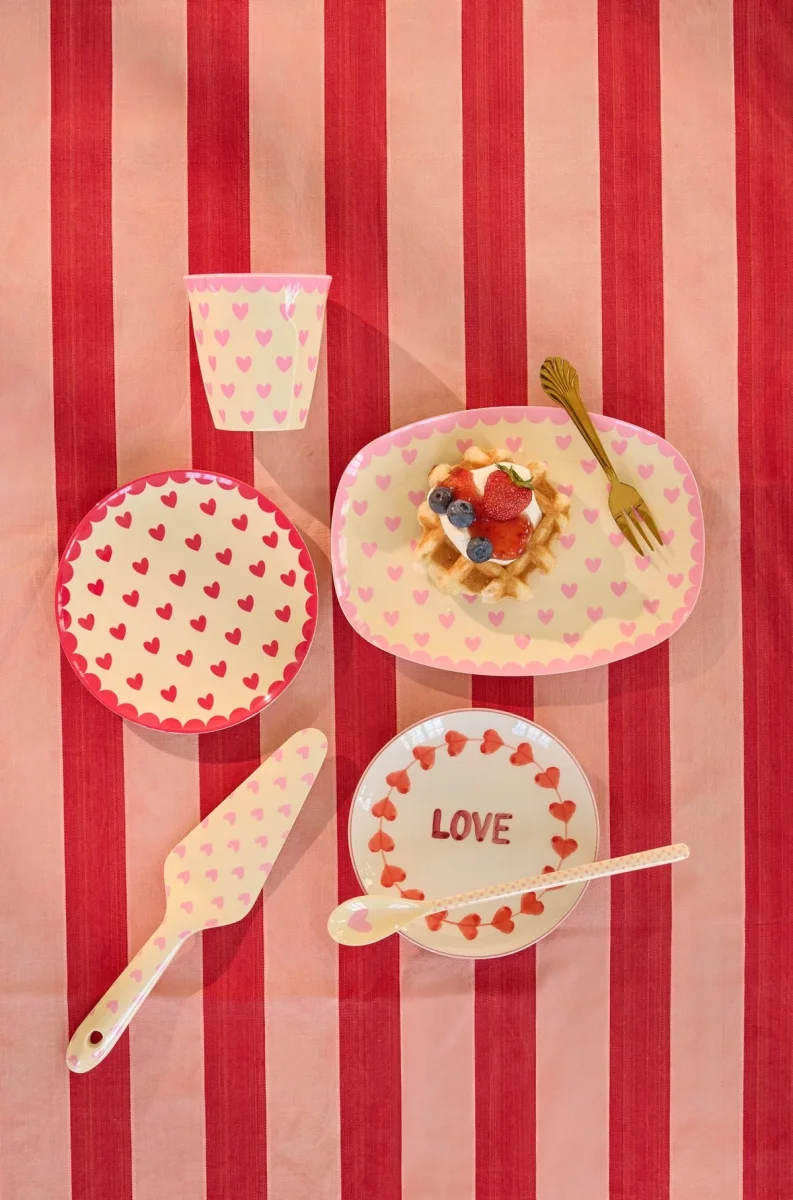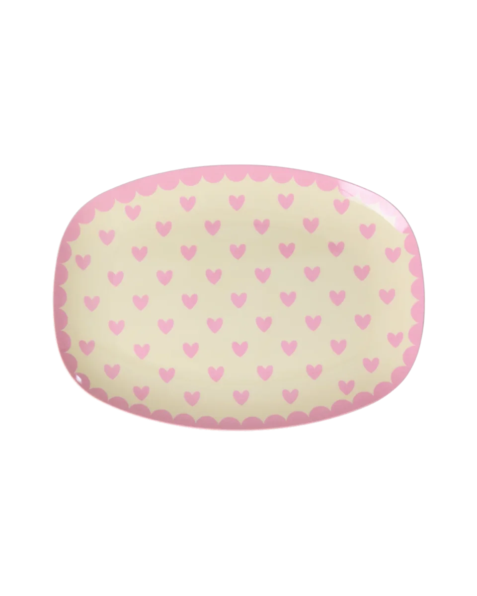 Rice: Klein Rechthoekig Melamine Bord – Favorite Hearts Print Roze MELCP-RECFAVII