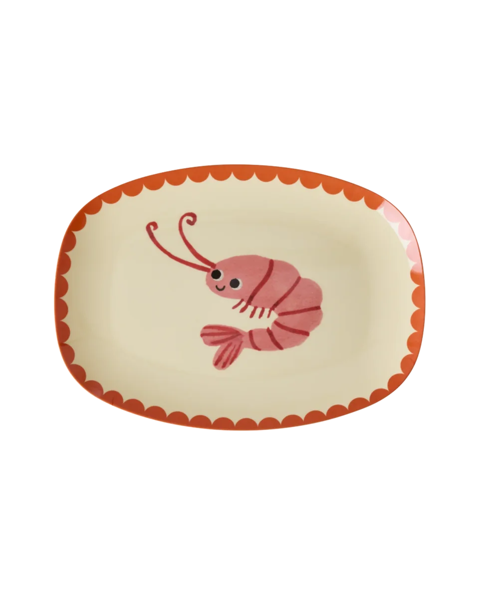 Rice: Klein Rechthoekig Melamine Bord – New Shrimp Print MELCP-RECNSHR