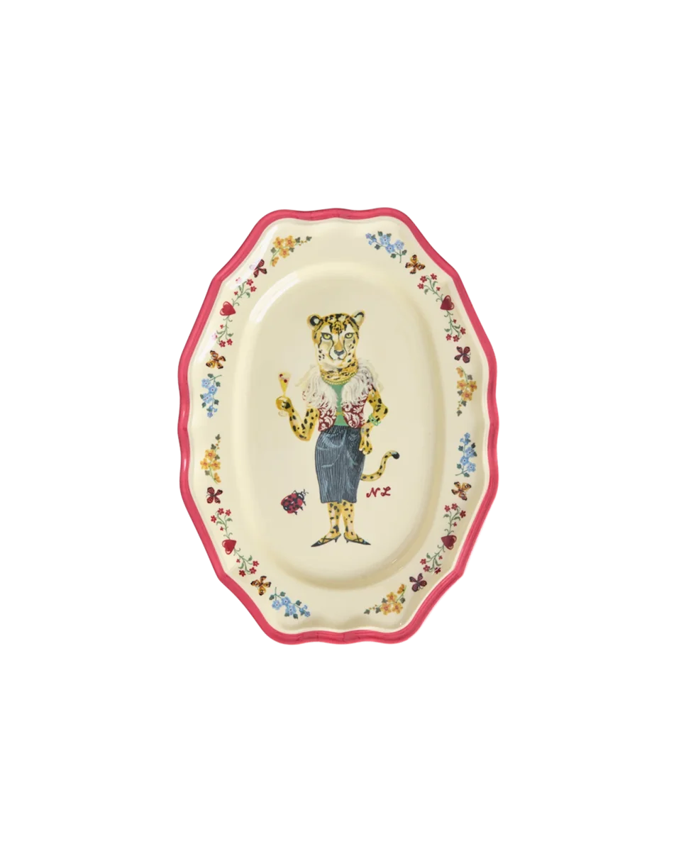 Serveer je heerlijke eten in een vintage-geïnspireerde schaal. De schaal heeft prachtige details en een echte diva luipaard … allemaal ontworpen door Nathalie Lété.