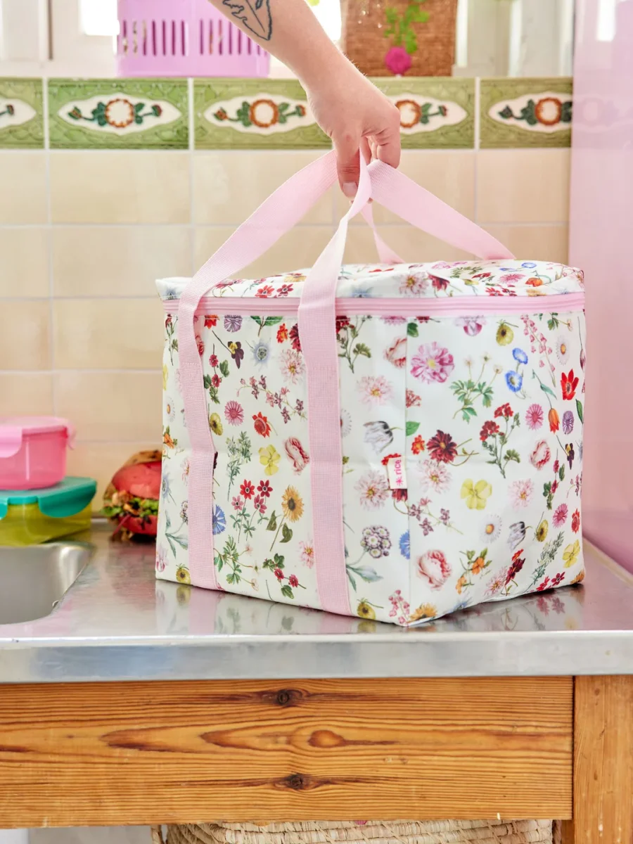 Mooie en functionele koeltas met de geweldige ‘Floras Dream’ (Bloemen Droom) print. De praktische zachtroze handvatten maken het gemakkelijk om de koeltas te dragen, of je nu naar het park of het strand gaat. De tas heeft voldoende ruimte om voor je picknick eten koel en vers te houden.