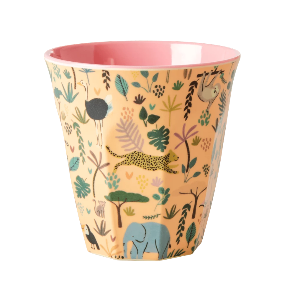 Rice: Medium melamine beker – FUN jungle print koraal MELCU-6ZFUNI