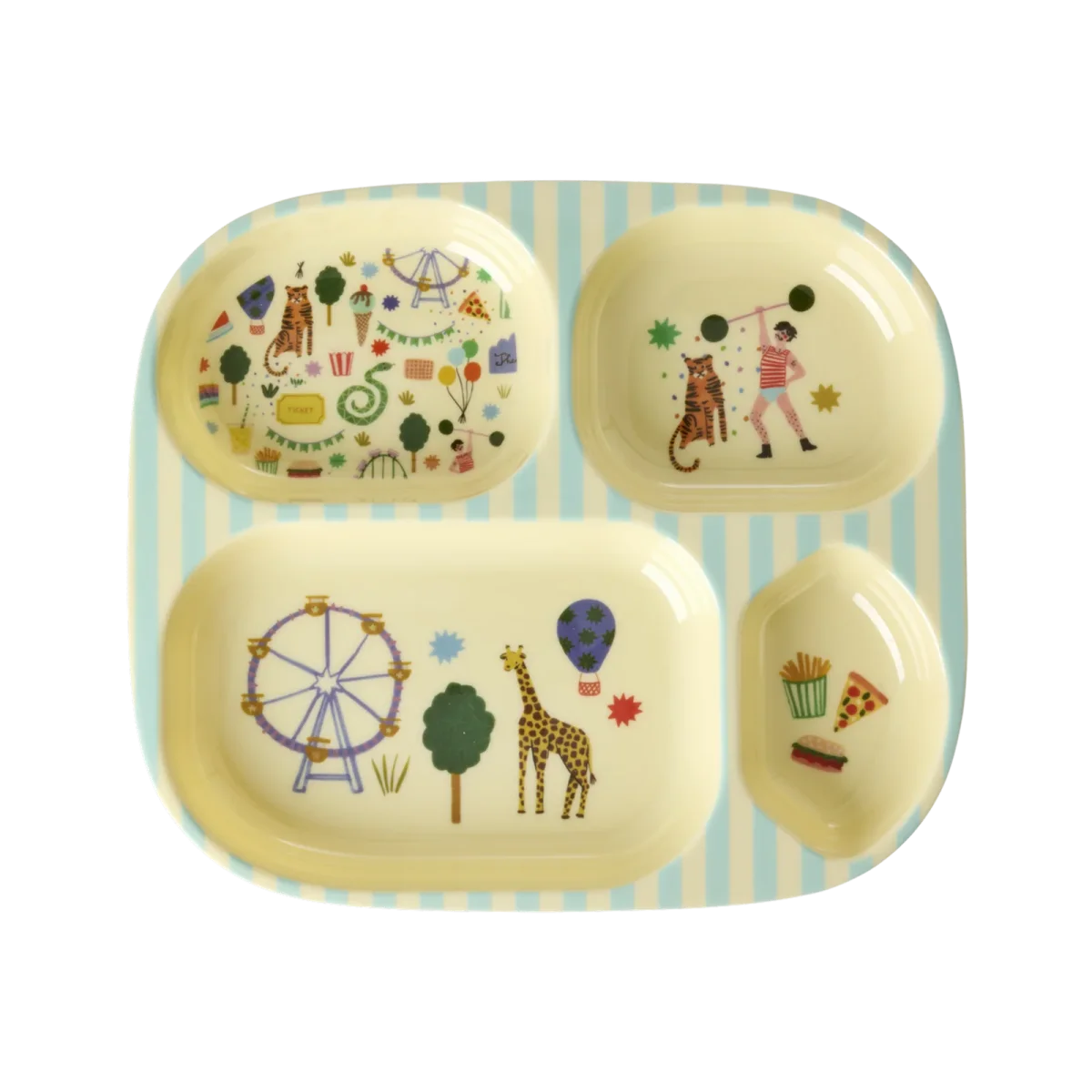 RICE: Melamine 4 vaks kinderbord – Fun Fair Print Mint KIPL4-FUFAMI