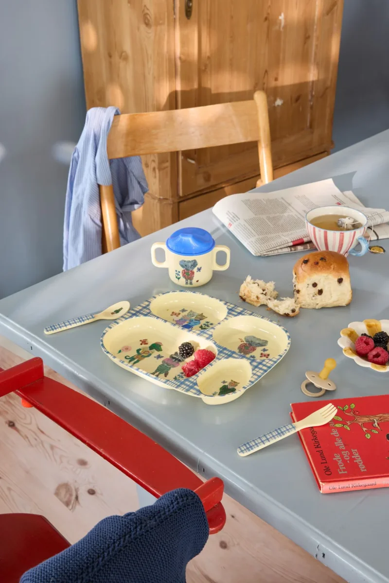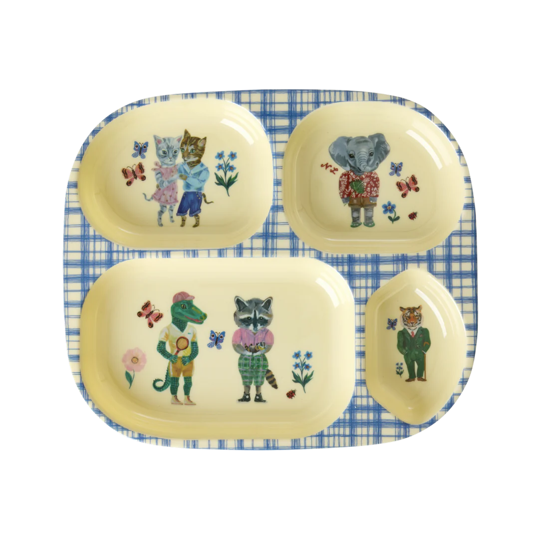 RICE: Melamine 4 vaks kinderbord – Nathalie L’ete Print Blauw KIPL4-NATB