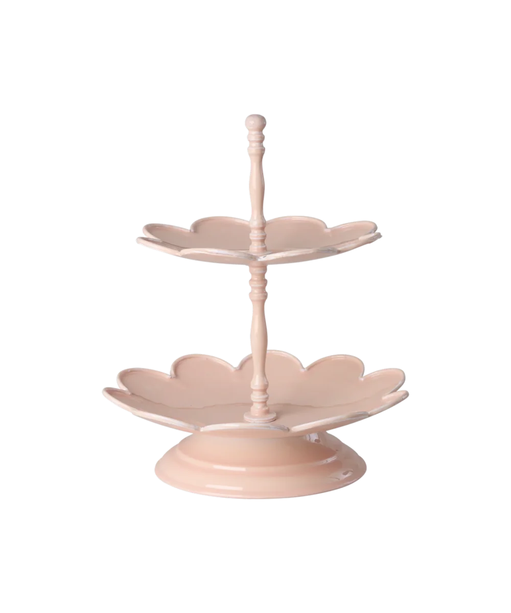 Serveer je hapjes in stijl met deze mooie roze etagère van metaal met twee plateaus en een leuk bloemenmotief. Deze etagère zorgt voor wat extra Allerdaagse Magie tijdens je tuinfeestje, een verjaardagsfeestje of als je gewoon zelf van een theetje en een taartje aan het genieten bent.