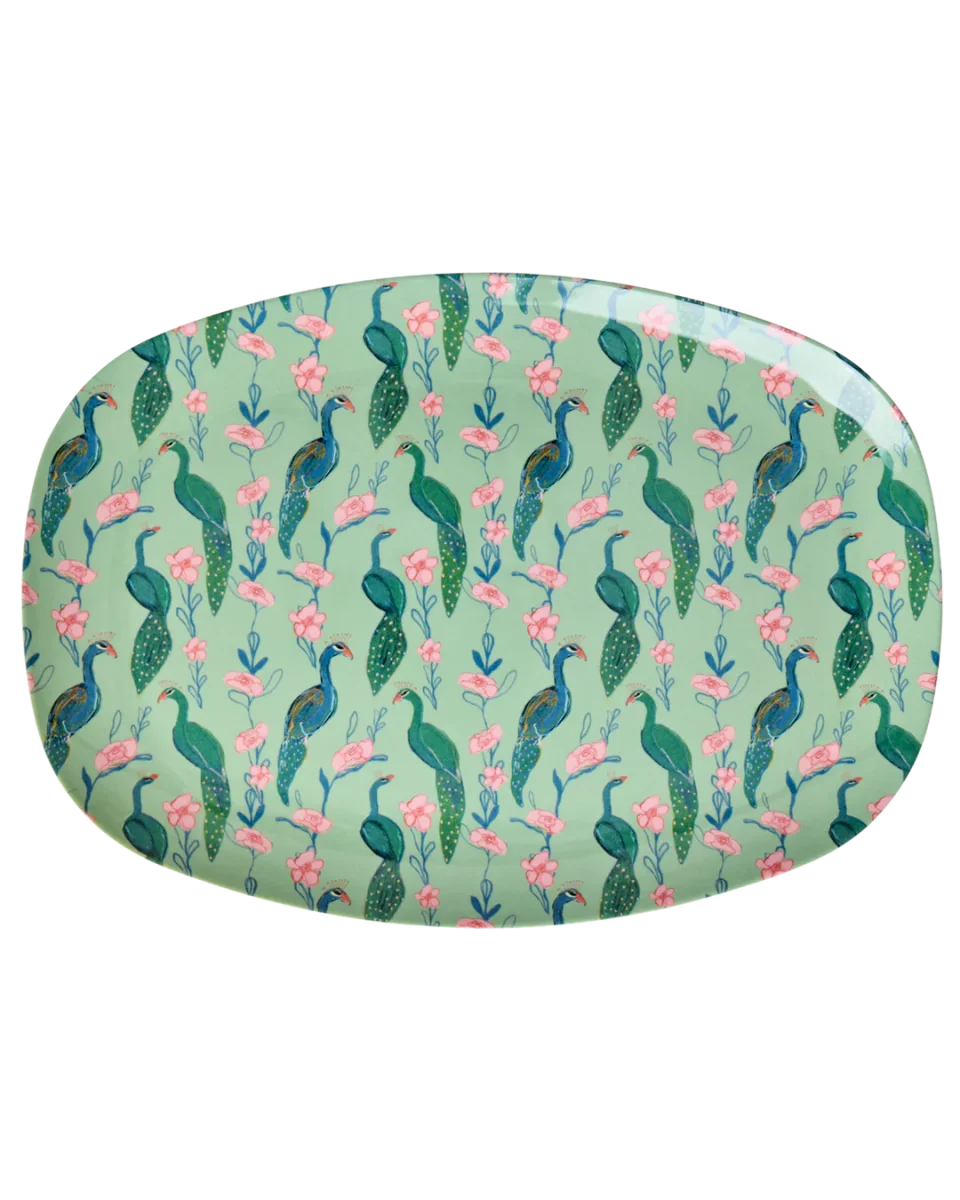 Rice: Rechthoekig Melamine Bord – Peacock Power Print MELPL-PEPO