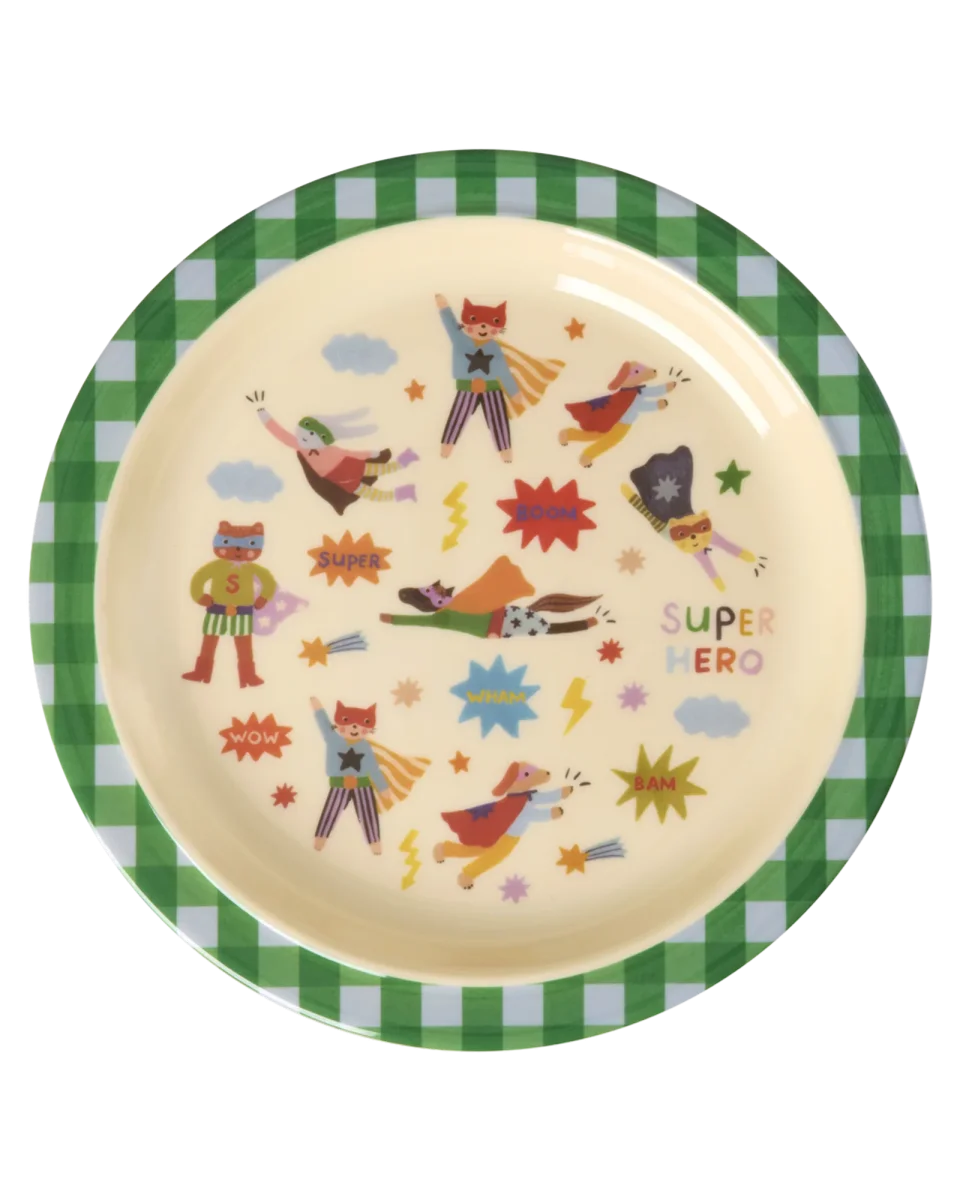 Rice: Rond melamine kinderbord | Hero print | Groen KILPL-HERO