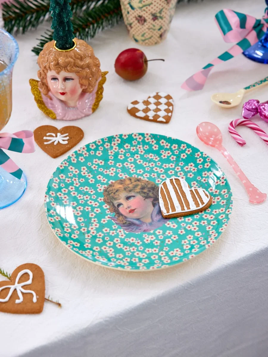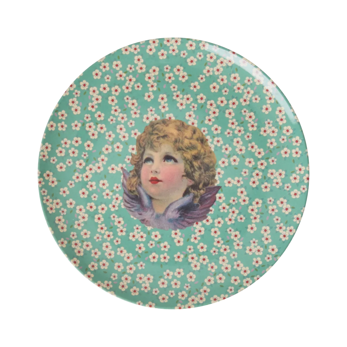 Rice: Rond Melamine lunch bord – Angel Print groen XMESP-PH4ANG