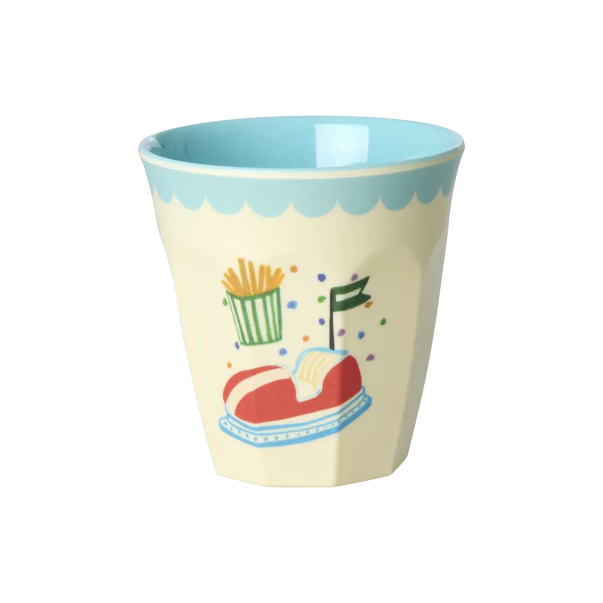 Rice: Set van 6 kleine melamine bekers – Fun Fair print | Blauw MELCU-6ZSFUFAMI