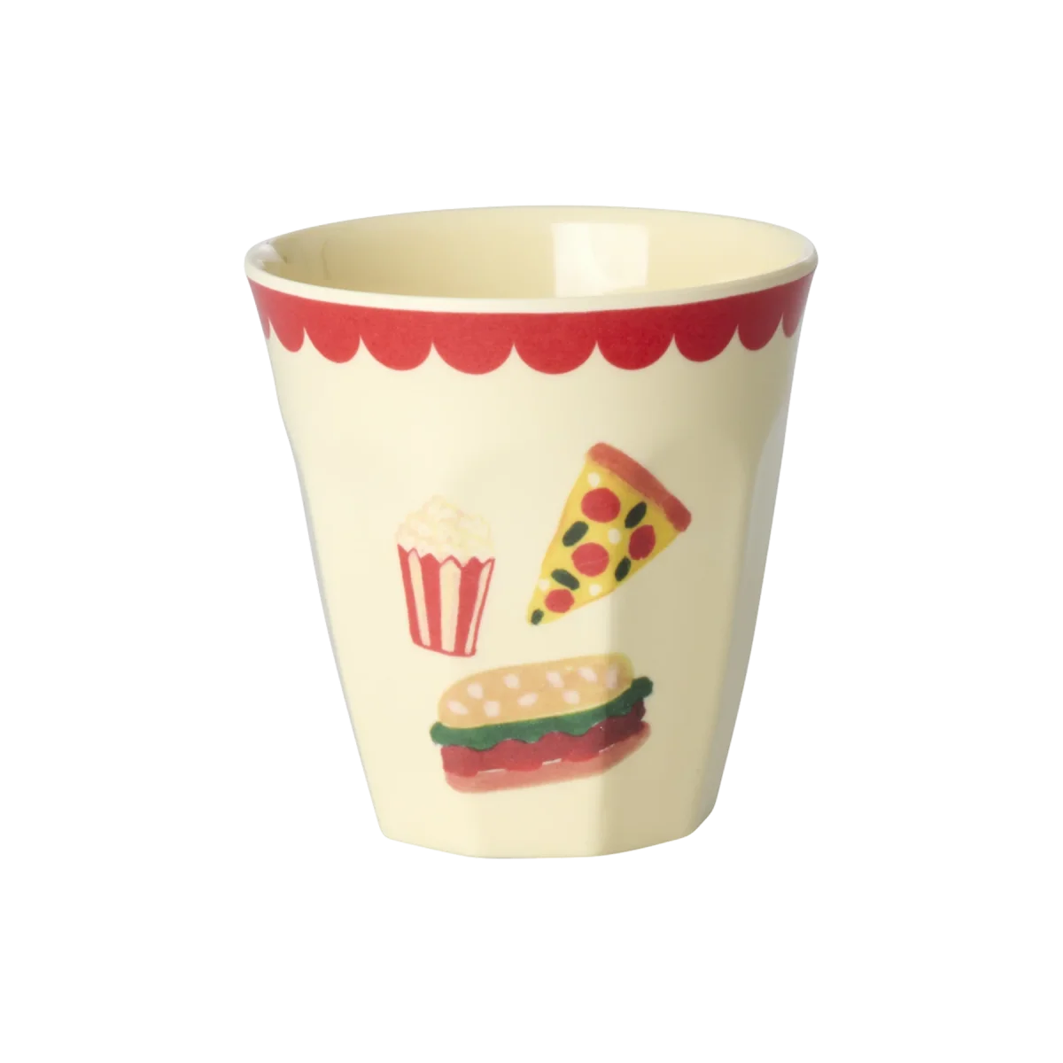 Laten we naar de kermis gaan! De grappige botsauto’s, krachtpatsers, popcorn en pizza, je ziet het allemaal op de 6 melamine bekertjes met de “Fun Fair” (Kermis) prints die in deze geschenkdoos zitten.