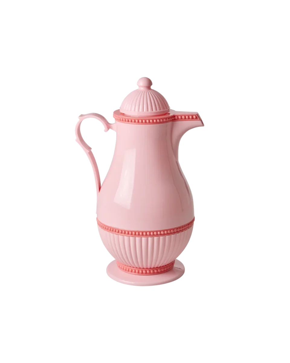 De allerleukste roze thermoskan met prachtige koraalkleurige details en een op vintage geïnspireerde vorm. Er past tot 1 liter in en vloeistoffen kunnen er 12 uur lang in warm worden gehouden. Een echte aanrader voor je volgende picknick!