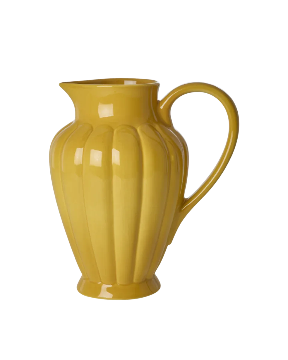 Een mooie, gele keramieken kan in een unieke vorm – voor degene die net zoveel wij van kleine details houdt! De kan heeft een inhoud van 3 liter en is voor vele dingen geschikt. Voor het serveren van water bij de lunch, vruchtensap bij de brunch of een lekker wijntje bij het diner … of je kunt er je favoriete bloemen in zetten en het als vaas gebruiken!
