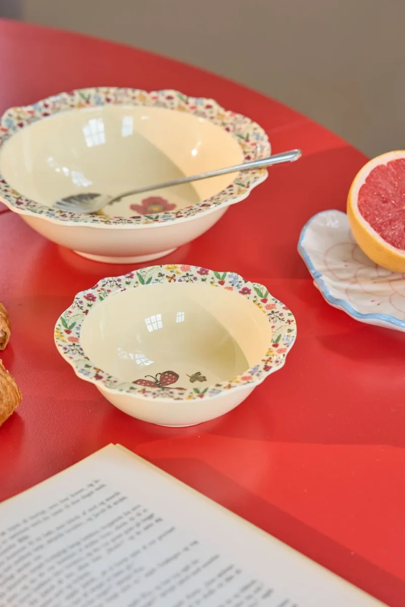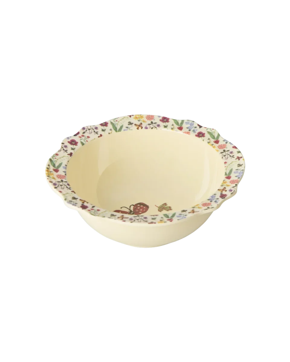 We zijn helemaal weg van dit kommetje! Het is ontworpen in samenwerking met Nathalie Lété en geïnspireerd op vintage ontwerpen. De rode vlinder en de prachtige bloemenprint op de rand zorgen ervoor dat het kommetje perfect is voor een salade, wat aardappeltjes of om wat snoep in te serveren. Het kommetje is gemaakt van het duurzame materiaal melamine, wat perfect is voor dagelijks gebruik, omdat het sterk en makkelijk schoon te maken is. Let op: het product is niet geschikt voor de magnetron.