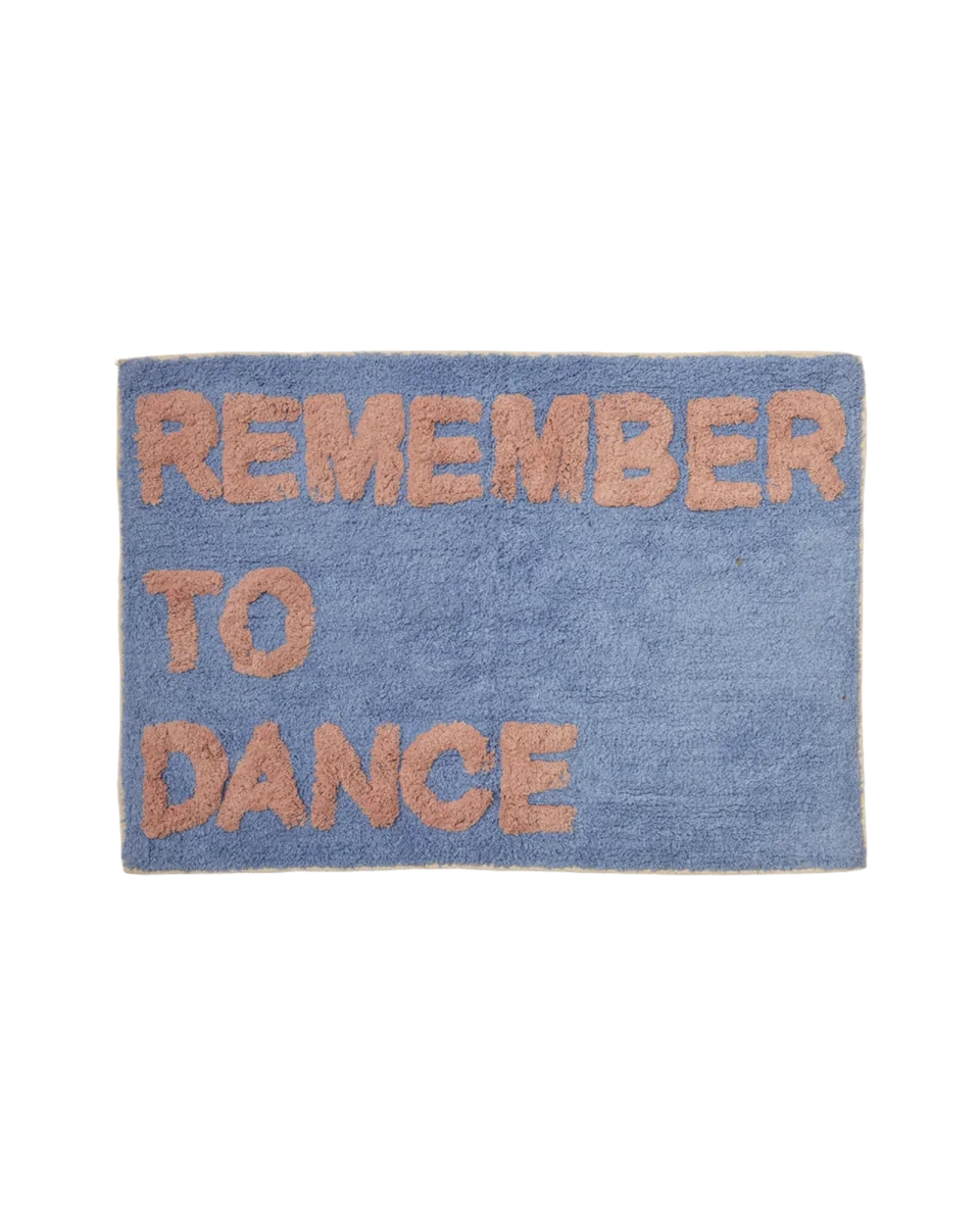 Remember to dance! (Vergeet niet te dansen!) Het kleedje is blauw met zacht roze en meet 50 x 70 cm – perfect voor in de gang, slaapkamer, kinderkamer en de badkamer!