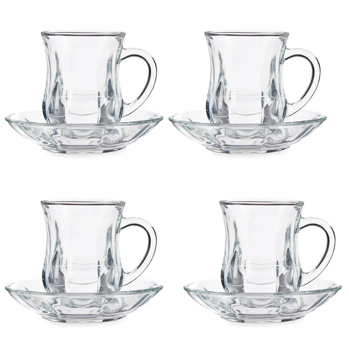 Set van 12x stuks Marokkaanse theeglazen inclusief schotel 125 ml. De glazen zijn perfect voor een heerlijke kopje thee, maar zijn ook geschikt voor koffie of andere warme dranken. Geschikt voor in de vaatwasser. Materiaal: glas. Afmeting per glas: ca. 9 x 6.5 x 8.5 cm.