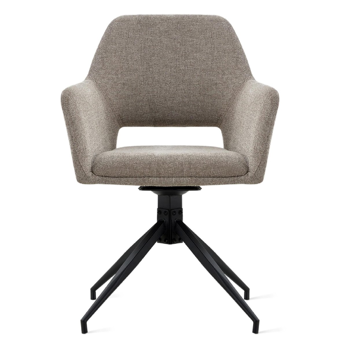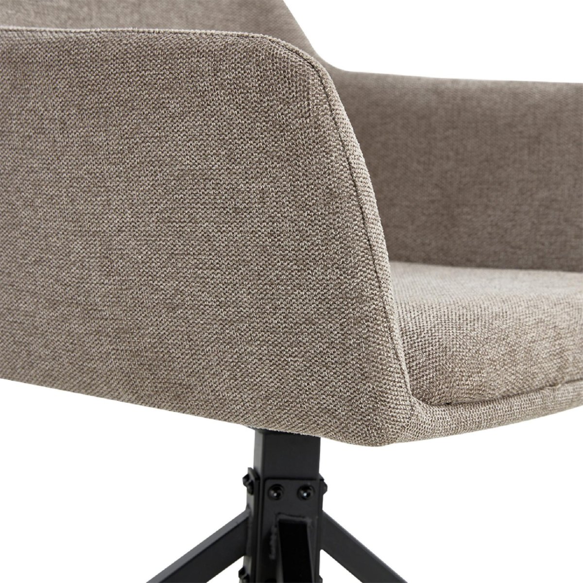 Deze set van 2 draaibare eetkamerstoelen met armleuningen combineert modern design, ergonomisch zitcomfort en praktische functionaliteit. De stoelen zijn bekleed met een linnen-look stof in taupe (lichtbruin), een tijdloze, neutrale kleur die perfect past in vrijwel ieder interieur. Dankzij de 180° draaifunctie, de royale kuipzitting en de extra comfort foam vulling zit je ontspannen en stabiel tijdens lange diners, borrels, thuiswerk- of spelavonden. Het slanke metalen onderstel geeft de stoelen een lichte, moderne uitstraling, waardoor ze zowel in de eethoek als in de woonkamer of keuken stijlvol tot hun recht komen. Zoek je comfortabele, draaibare eetkamerstoelen met armleuningen in een easy-to-style kleur? Dan is deze set van 2 een praktische, duurzame en elegante keuze.