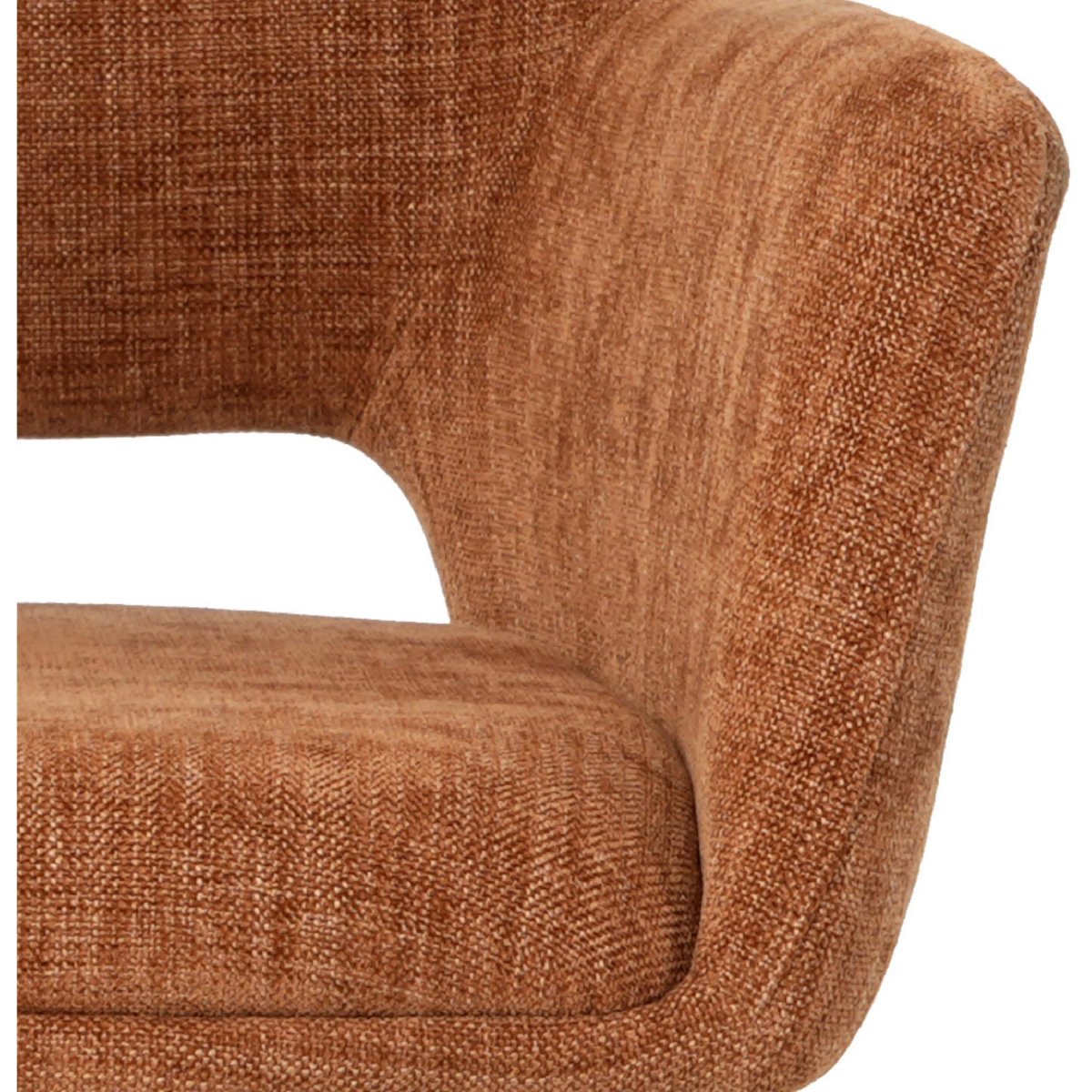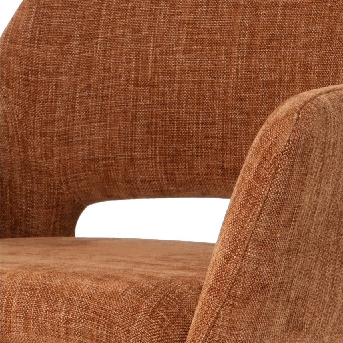 De bekleding in linnenlook voelt zacht en comfortabel aan en geeft de stoelen een natuurlijke, warme uitstraling. De subtiel geweven textuur brengt diepte in de roest/terracotta tint, waardoor de stoelen mooi uitkomen bij houten tafels, betonlook bladen en zwarte of metalen accenten. De stof is onderhoudsvriendelijk: regelmatig licht stofzuigen met een zachte borstel en vlekken direct deppen helpt om de bekleding langer mooi en fris te houden. Dankzij het veerkrachtige comfort foam behoudt de zitting zijn vorm, ook bij intensief dagelijks gebruik in een gezinssituatie. De volledig gestoffeerde zitting en rug zorgen bovendien voor een rustige, hoogwaardige look. Wil je meer glans en hotel-chic in je interieur, dan is er ook een velvet uitvoering van dit model, perfect passend bij een luxere, sfeervolle woonstijl.