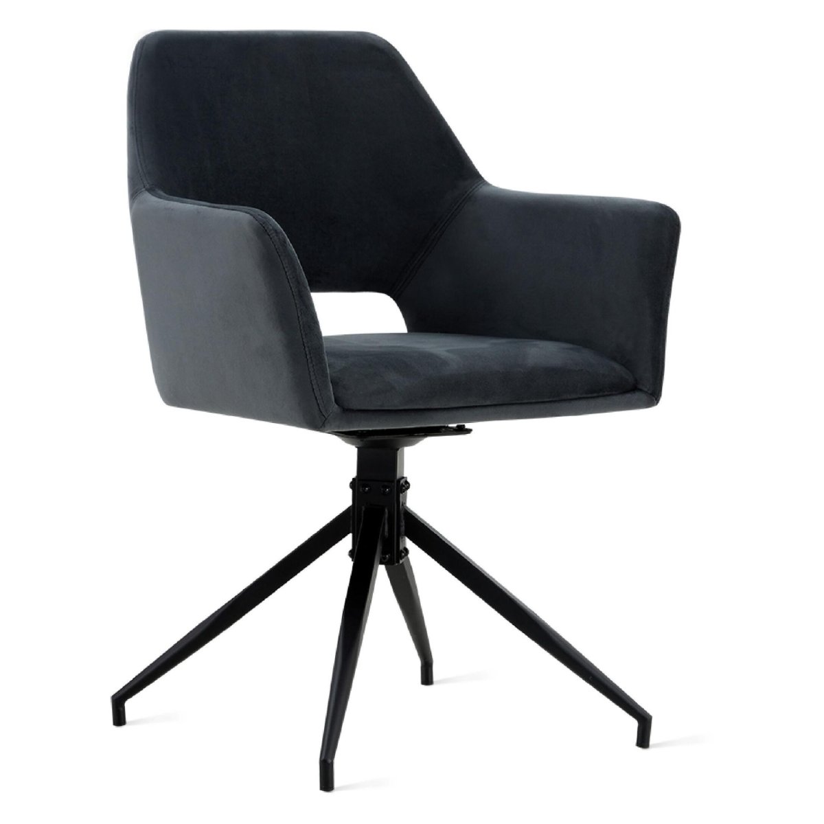 Maak kennis met de Nest of Nora set van twee draaibare eetkamerstoelen met armleuningen in luxe velvet in tijdloos antraciet. Deze comfortabele kuipstoelen combineren modern design met slimme functionaliteit: een praktische 180° draaifunctie, zachte fluwelen bekleding en extra comfort foam in de zitting. Perfect als eetkamerstoel, draaistoel of stijlvolle accentstoel in de woonkamer, werkkamer of woonkeuken. Dankzij de prettige zithoogte en royale zitdiepte zit je ontspannen tijdens lange etentjes, borrels of thuiswerkdagen. De set van 2 zorgt voor een harmonieuze, symmetrische look rond de eettafel en sluit moeiteloos aan bij moderne, industriële én Scandinavische interieurs.