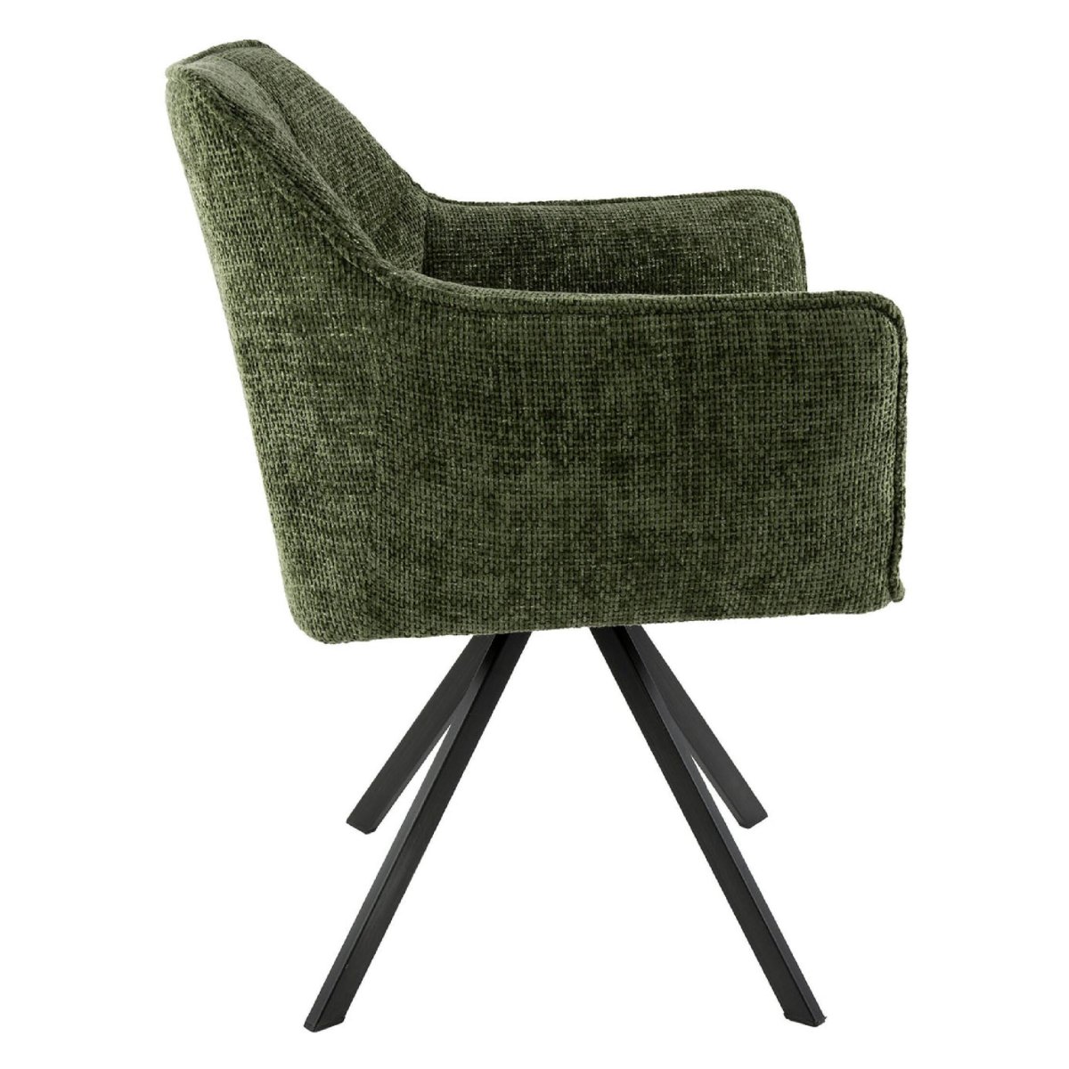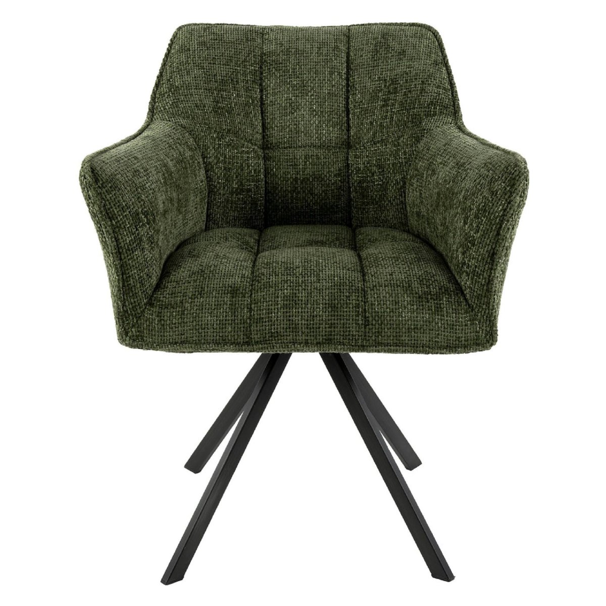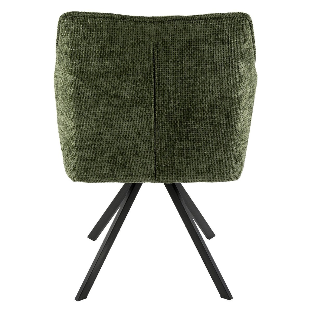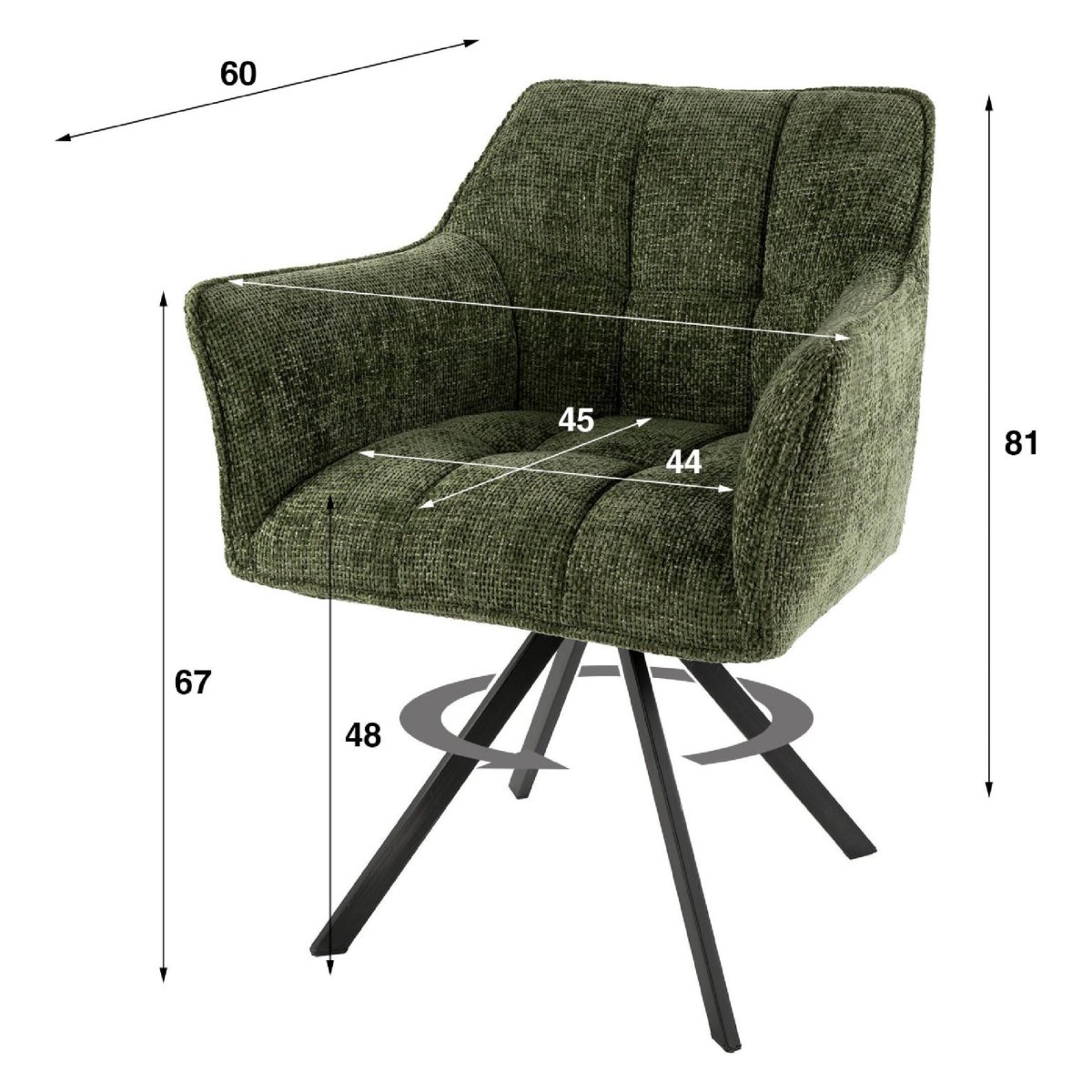 - Type stoel: groene draaibare eetkamerstoel met kuipzitting