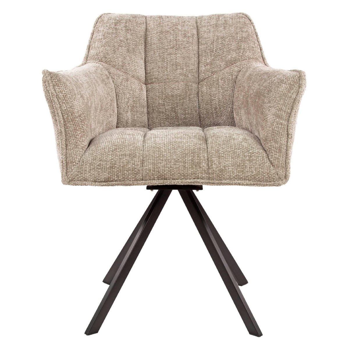 De 2-pack Nest of Nora eetkamerstoelen Elda in de kleur zand biedt een perfecte combinatie van modern design, dagelijks zitcomfort en praktisch gebruiksgemak. Deze draaibare armstoelen met nosag vering hebben een zachte, duurzame stoffering in de tijdloze tint Hoven zand en passen moeiteloos in een moderne, industriële, landelijke of Scandinavische eethoek. Dankzij de comfortabele kuip met armleuningen zit je ontspannen tijdens lange etentjes, terwijl de 360 graden draaifunctie de stoelen ideaal maakt voor aan de eettafel, in de keuken of in een open leefruimte. Deze set van twee eetkamerstoelen is perfect voor wie de eetkamer, woonkeuken of eetzone in de woonkamer een stijlvolle én comfortabele upgrade wil geven.