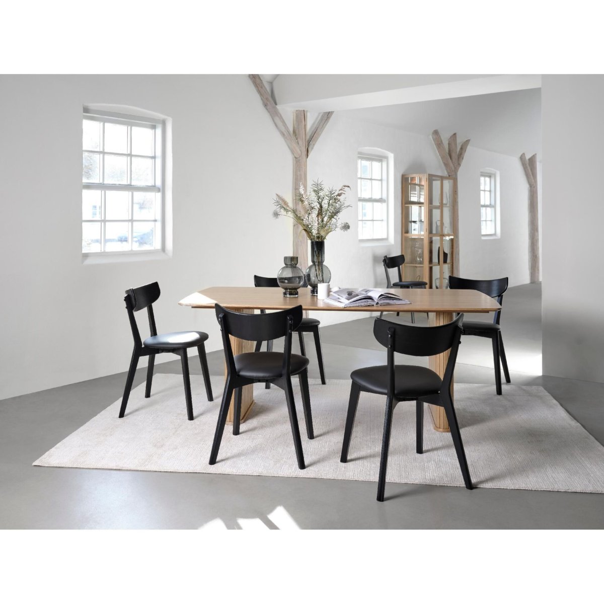 De zwarte eiken afwerking, strakke lijnen en het minimalistische silhouet maken van deze design eetkamerstoelen echte allrounders voor ieder interieur. Ze combineren moeiteloos met houten eettafels, tafels met zwart metalen onderstel en lichte of juist donkere interieurs. De compacte buitenmaten van 81,5 x 47,5 x 50 cm zorgen ervoor dat je meerdere stoelen rond de tafel kunt plaatsen zonder dat de eethoek vol of rommelig oogt. In een Scandinavisch interieur brengen ze rust, eenheid en warmte; in een industrieel decor versterken ze het stoere, eigentijdse karakter. Dankzij de levering per set van 2 style je snel en eenvoudig een complete eethoek of breid je je huidige eetkamerstoelen uit met exact dezelfde look, materiaalkeuze en zitkwaliteit. Zo haal je met de Karo-serie van Nest of Nora een duurzame, comfortabele en stijlvaste oplossing in huis voor elke eettafel.