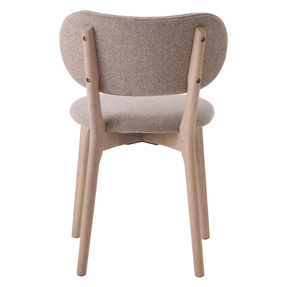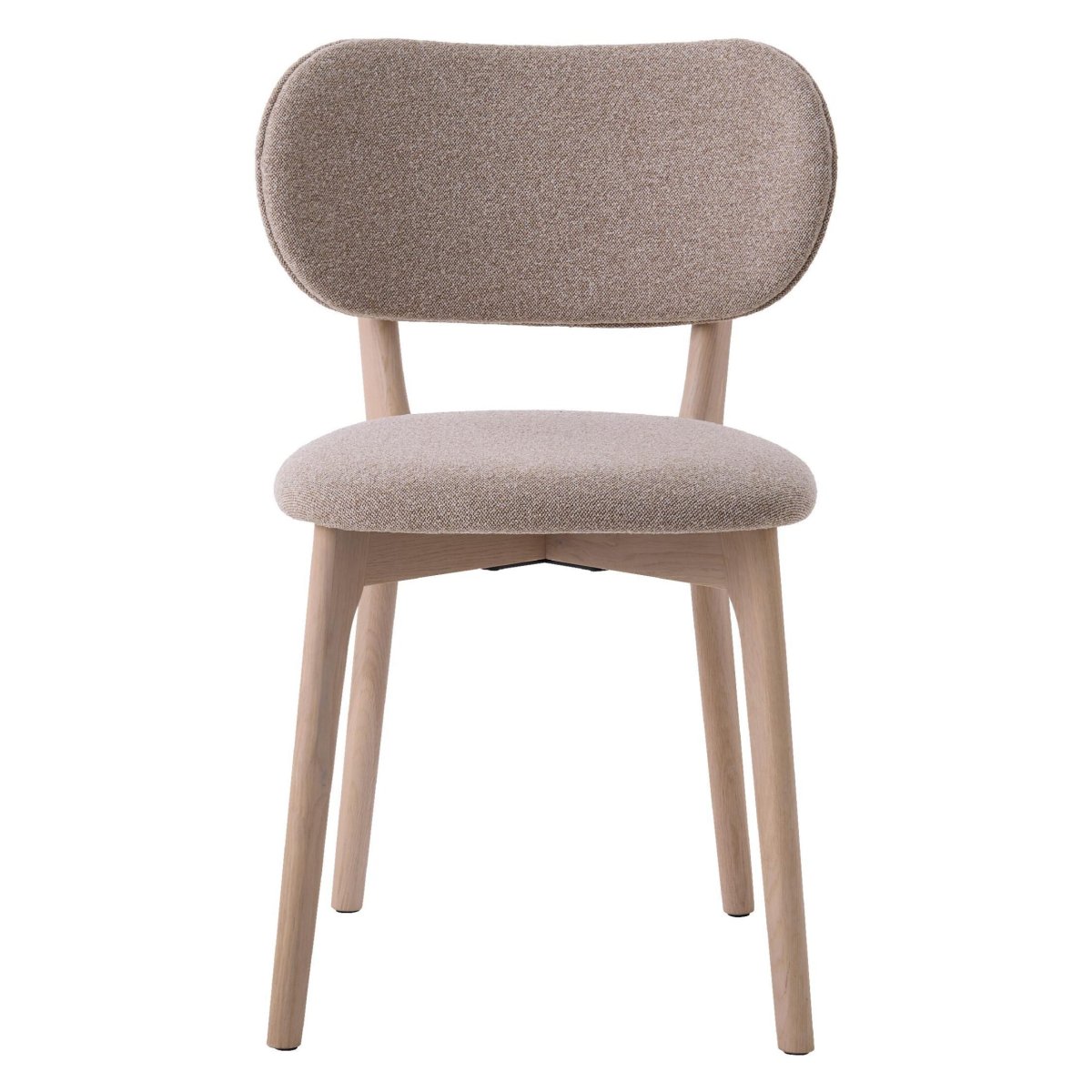 Het frame en de poten van deze eetkamerstoelen zijn gemaakt van massief eikenhout voor optimale stabiliteit, lange levensduur en een hoogwaardige uitstraling. De white pigmented afwerking laat de natuurlijke nerf en structuur van het eikenhout mooi zichtbaar, terwijl de 4% pigment en NC-lak met 10% glans het hout beschermen tegen dagelijks gebruik, vlekken en slijtage. Het resultaat is een frisse, lichte houttoon die rust brengt in je interieur en goed combineert met zowel lichte als donkere eettafels. Dankzij de FSC MIX 70% herkomst maak je bovendien een bewuste, meer duurzame keuze. De combinatie van solide massief eiken en de zachte, tactiele stof zorgt voor een uitgebalanceerde eetkamerstoel met een rustige, premium uitstraling.