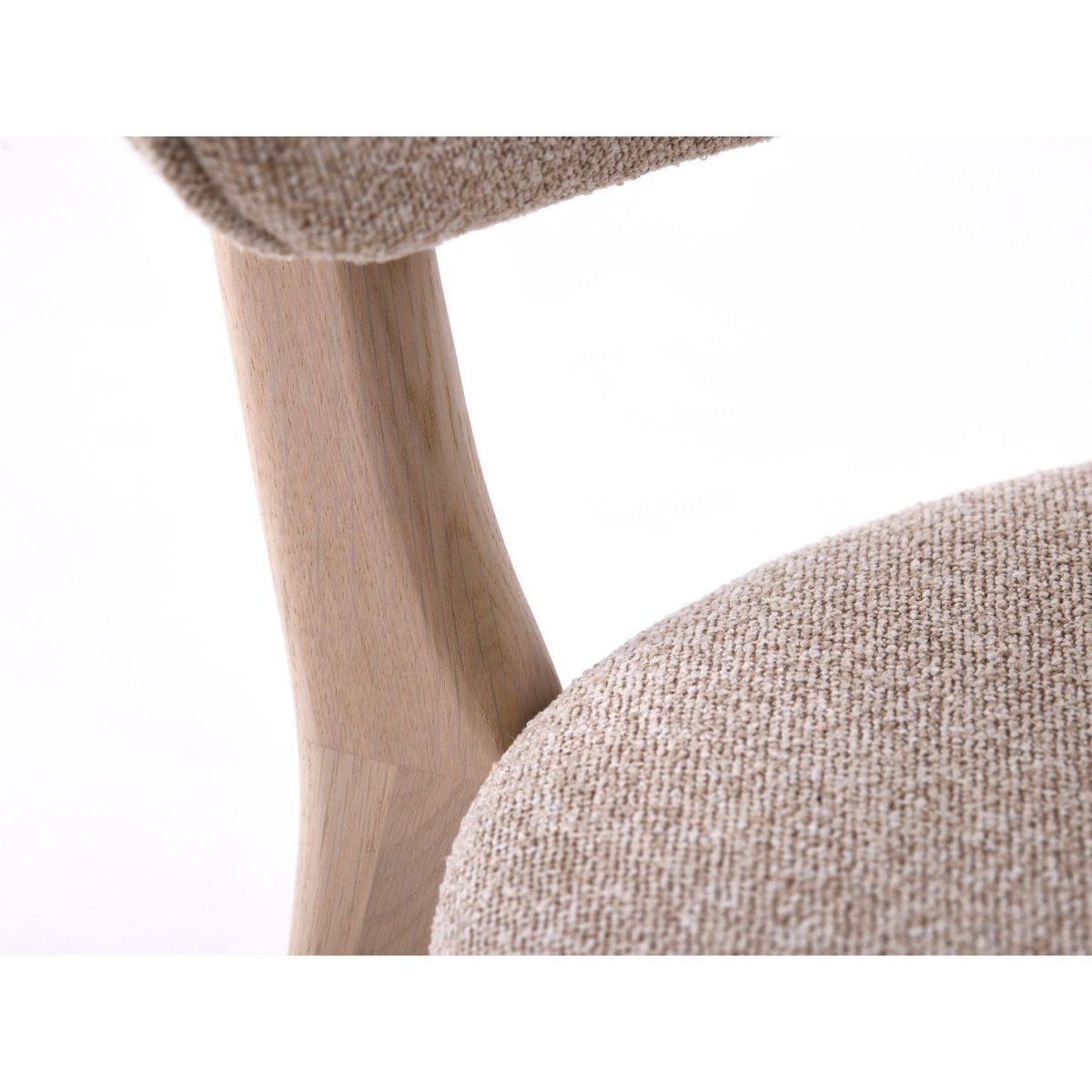 De Lake 120-bekleding in zandkleur geeft deze eetkamerstoelen een warme, rustige en uitnodigende look. De fancy, kleine lusgaren zorgen voor een subtiele, maar zichtbare textuur met diepte en een mooie melange van lichte en donkerdere zandtinten. Daardoor oogt de stof luxe en sfeervol, terwijl hij tegelijk zeer slijtvast is dankzij een Martindale-waarde van meer dan 40.000 toeren. De stof voelt zacht en comfortabel aan, maar is geschikt voor intensief dagelijks gebruik in een gezin, aan de eettafel of in een open woonkeuken. De zandkleur combineert moeiteloos met eikenhout, zwarte of metalen details, witte muren, grijstinten en aardse kleuren, zodat je de stoelen makkelijk integreert in een modern, minimalistisch of Scandinavisch interieur.