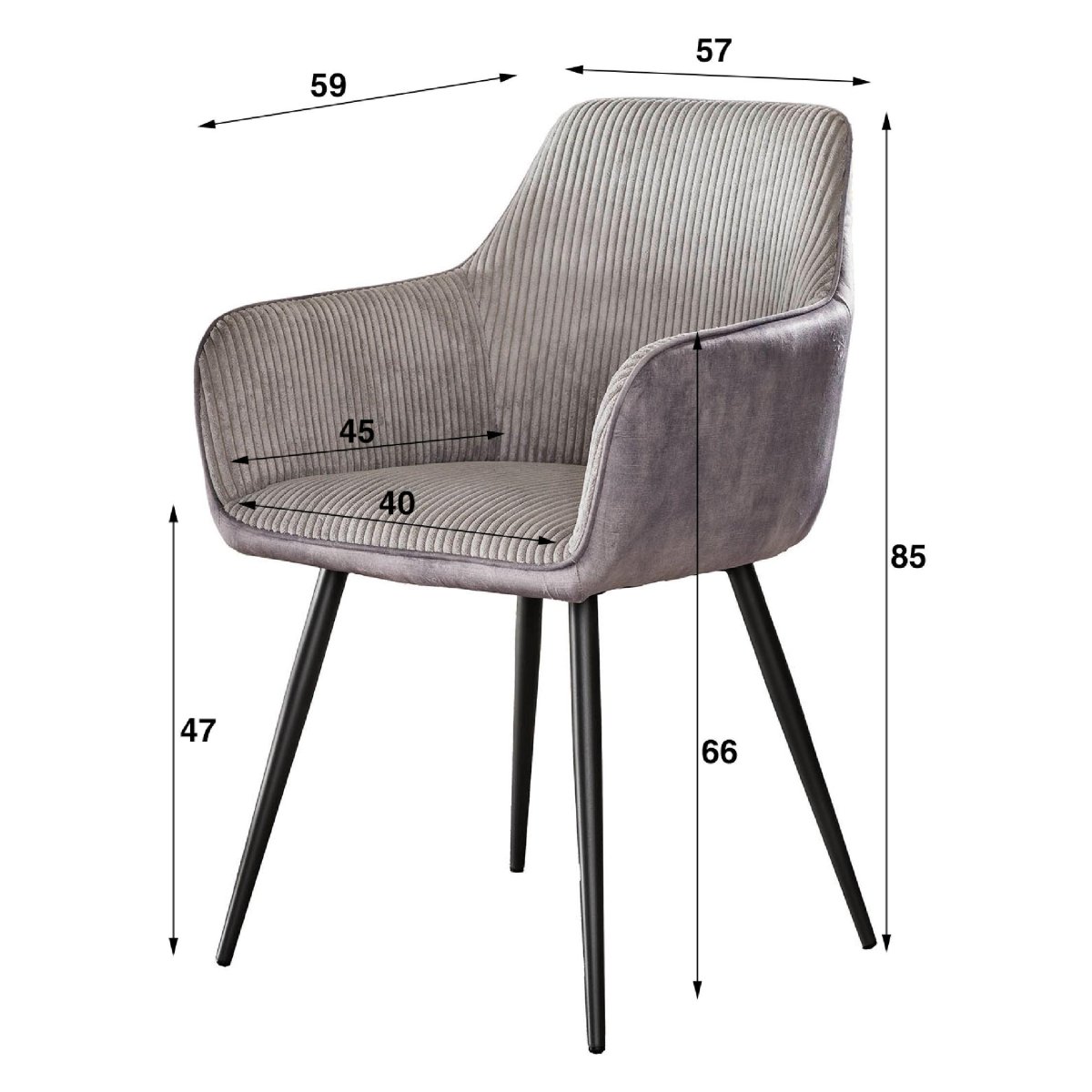 - Afmetingen stoel (l x b x h in cm): 57 x 59 x 85