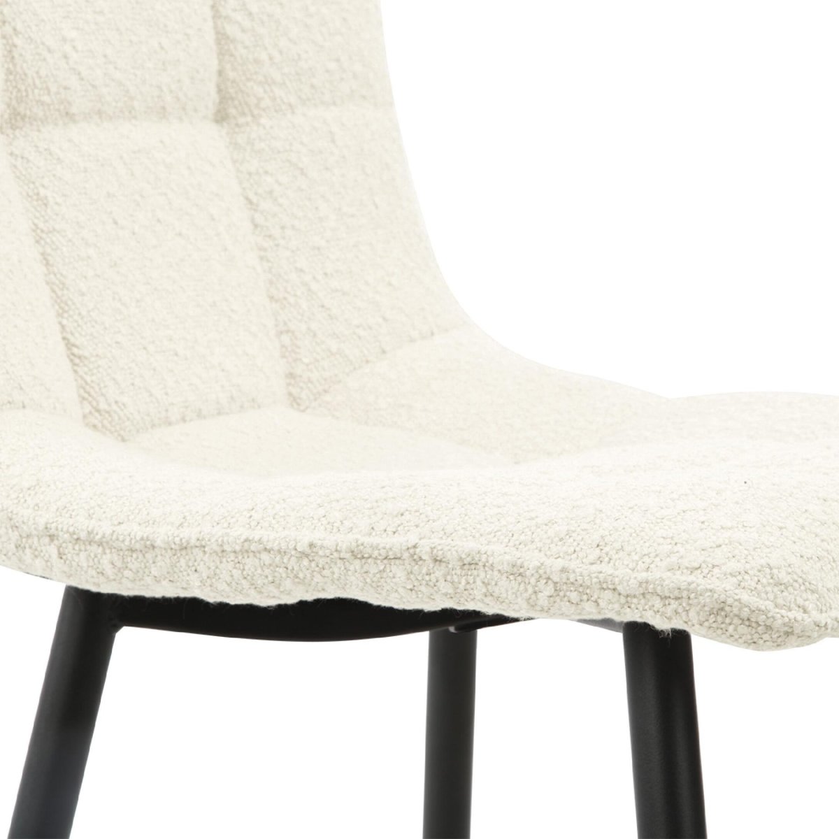 Dankzij de neutrale ivoortint en de strakke, tijdloze lijnen passen deze bouclé eetkamerstoelen moeiteloos in uiteenlopende interieurstijlen. Combineer ze met een ronde eettafel voor een speelse, gezellige setting, of plaats ze aan een rechthoekige tafel voor een rustige, symmetrische look. De compacte vormgeving maakt de stoelen ideaal voor zowel kleinere eethoeken als ruimere eetkamers. Doordat je ze soepel aan en onder de tafel schuift, behoud je voldoende loopruimte en blijft je eetkamer netjes en overzichtelijk. Of je nu een Scandinavisch interieur met licht hout hebt, een industrieel interieur met zwart staal of een luxe hotel chique stijl met marmerlook tafelbladen: deze gebroken witte bouclé eetkamerstoelen zorgen voor balans, comfort en een uitnodigende uitstraling in elke ruimte.