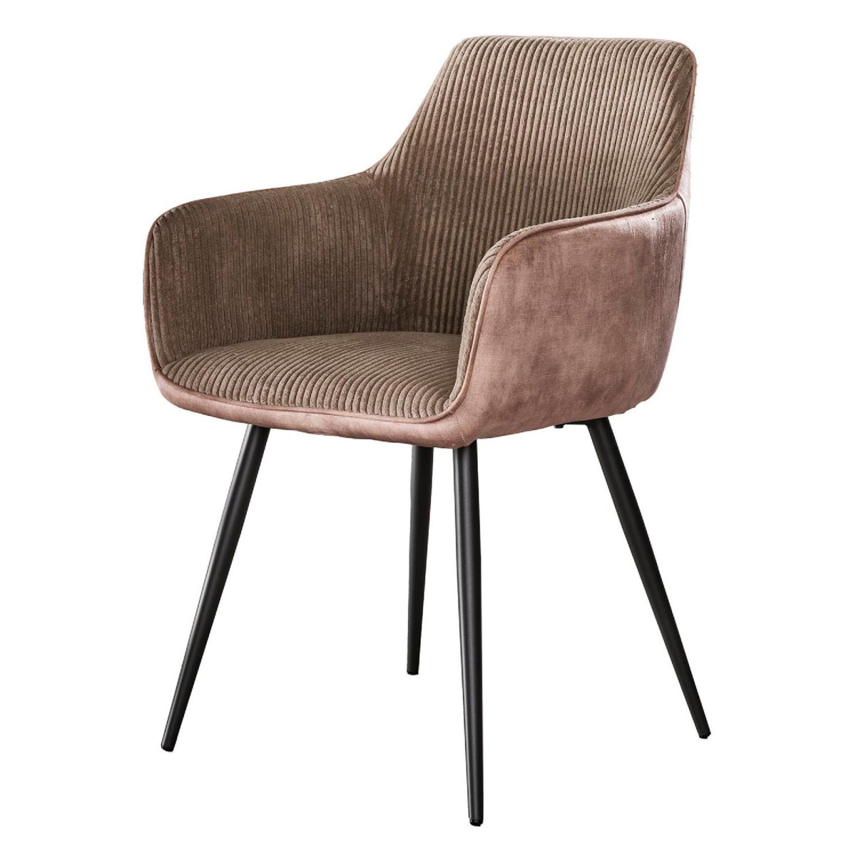 Met deze set van 2 Nest of Nora Norel eetkamerstoelen met armleuning geef je jouw eethoek direct een stijlvolle én comfortabele upgrade. De armstoelen zijn bekleed met een zachte ribstof in de neutrale kleur rock zand, waardoor ze moeiteloos passen in een modern, industrieel of Scandinavisch interieur. Het slanke zwarte metalen frame zorgt voor een eigentijdse en luchtige uitstraling, terwijl de licht gebogen rugleuning extra ondersteuning biedt tijdens lange etentjes, thuiswerkdagen of gezellige borrels. Dankzij de comfortabele armleuningen zit je ontspannen aan tafel en kun je deze eetkamerstoelen ook uitstekend gebruiken als extra stoel aan een bureau, in de woonkamer of in een gezellige leeshoek.